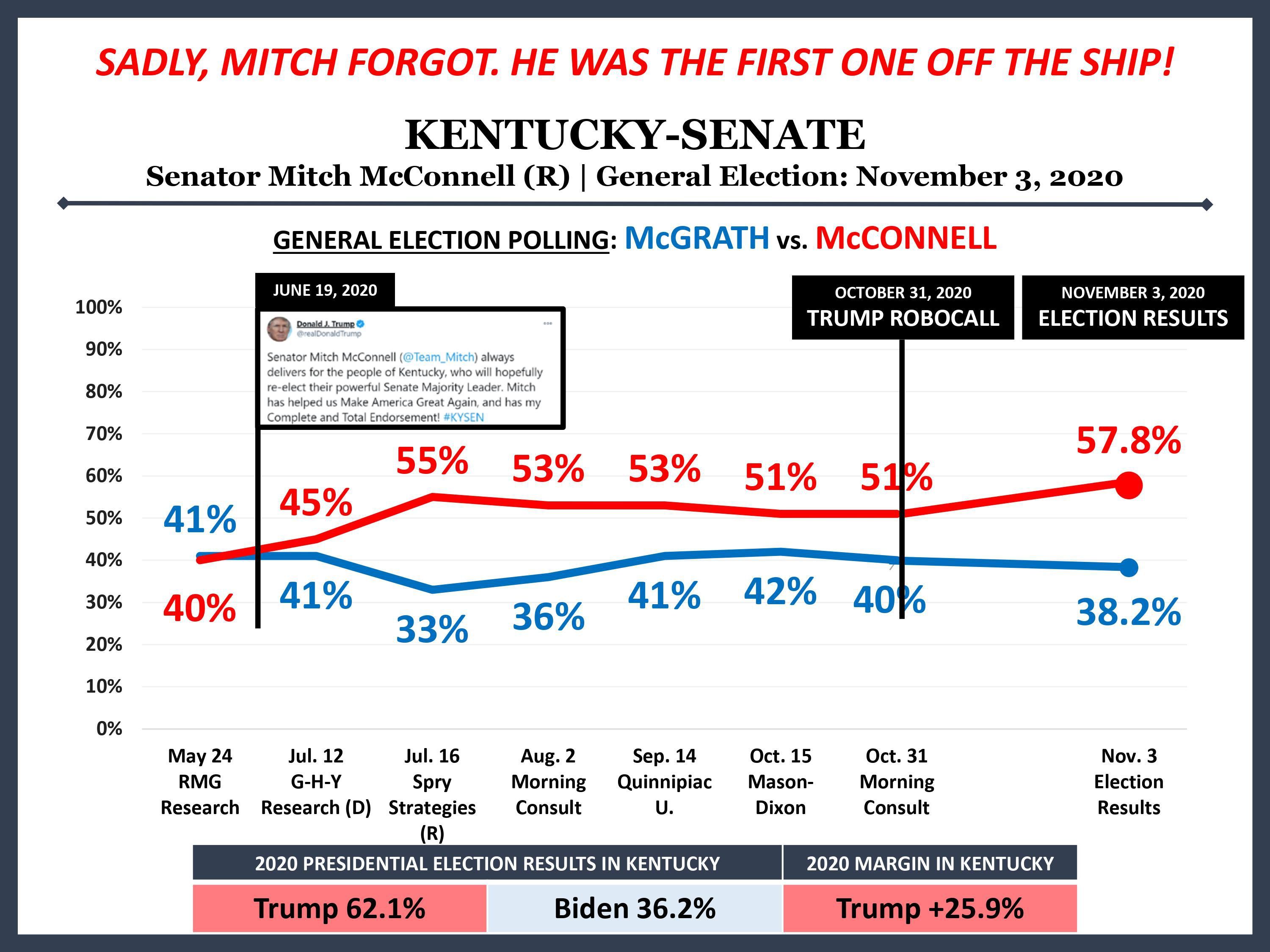 - As we reported in a Swan alert last night ("Trump trashes McConnell to fellow Republicans"), POTUS got his personal assistant to email Republican lawmakers a PowerPoint slide (above) attacking the Senate majority leader for being "the first one off the ship," and absurdly claiming credit for McConnell’s victory in his Kentucky reelection.