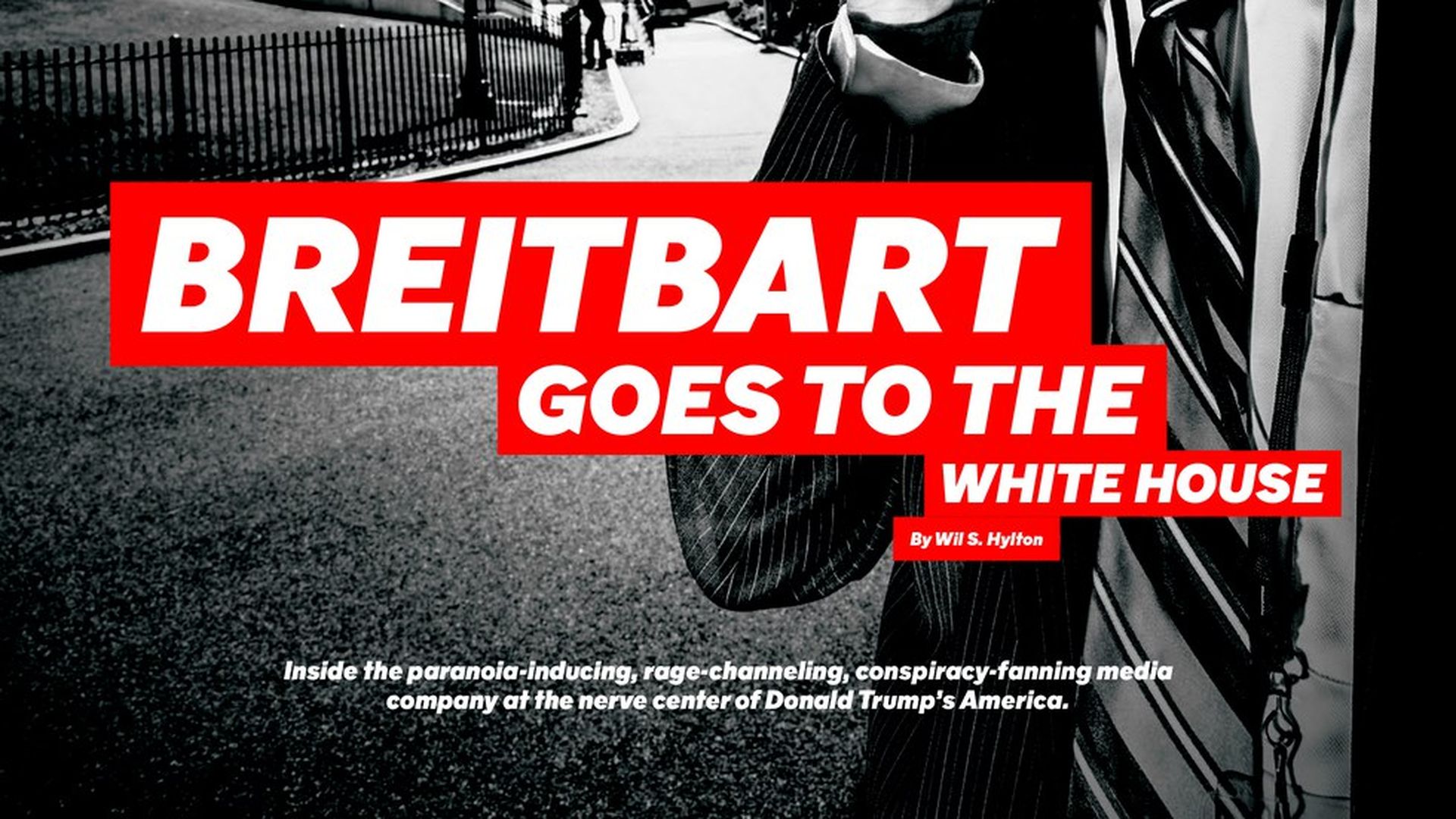 N.Y. Times Magazine cover story by Wil S. Hylton ... "Steve Bannon once said it was the platform for the alt-right. Its current editors disagree. Is the incendiary media company at the nerve center of Donald Trump's America simply provocative — or dangerous?":