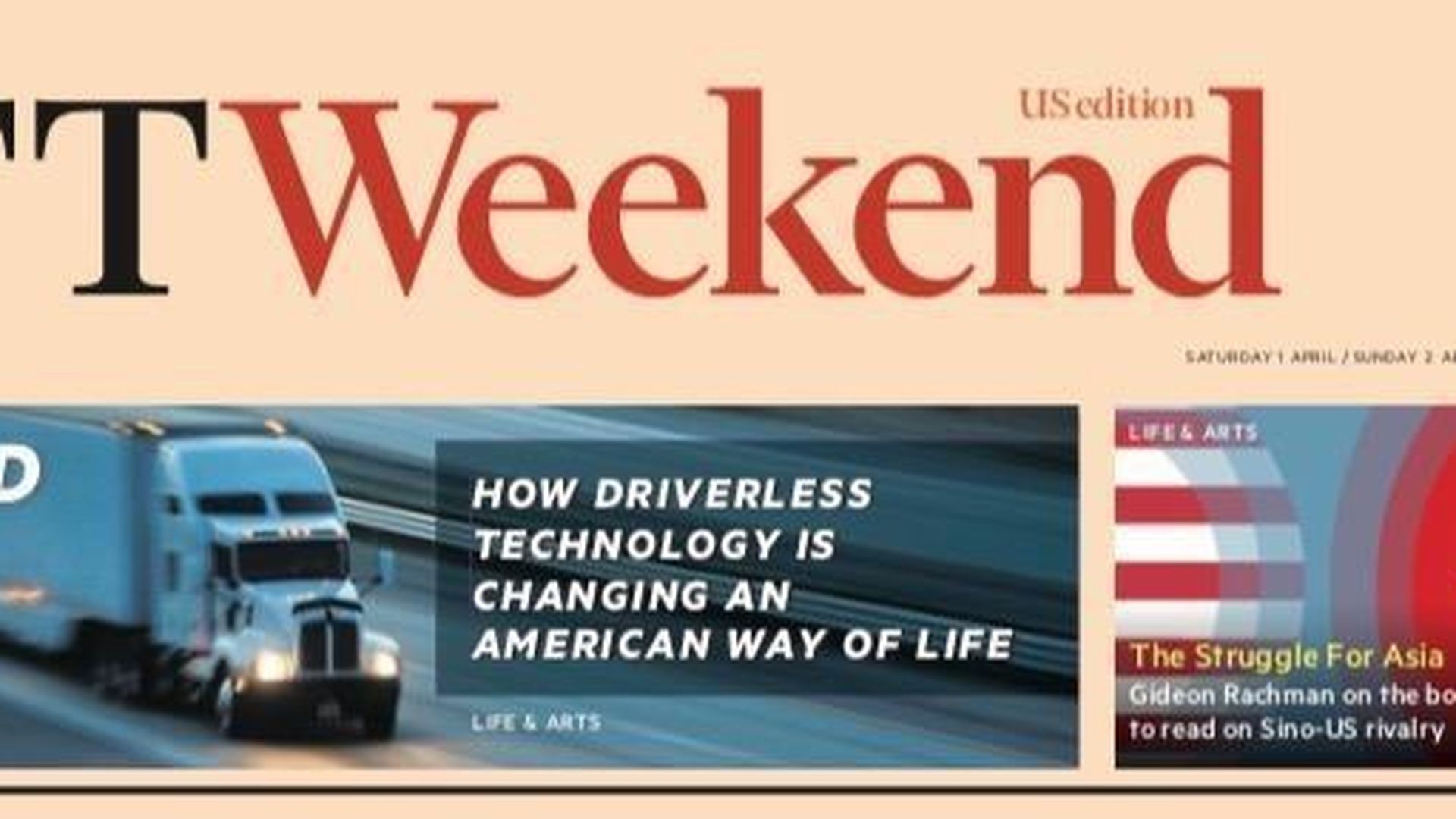 From Financial Times Magazine, "[D]riverless vehicles and the end of the trucker: New self-driving technology threatens an American way of life," by Leslie Hook: