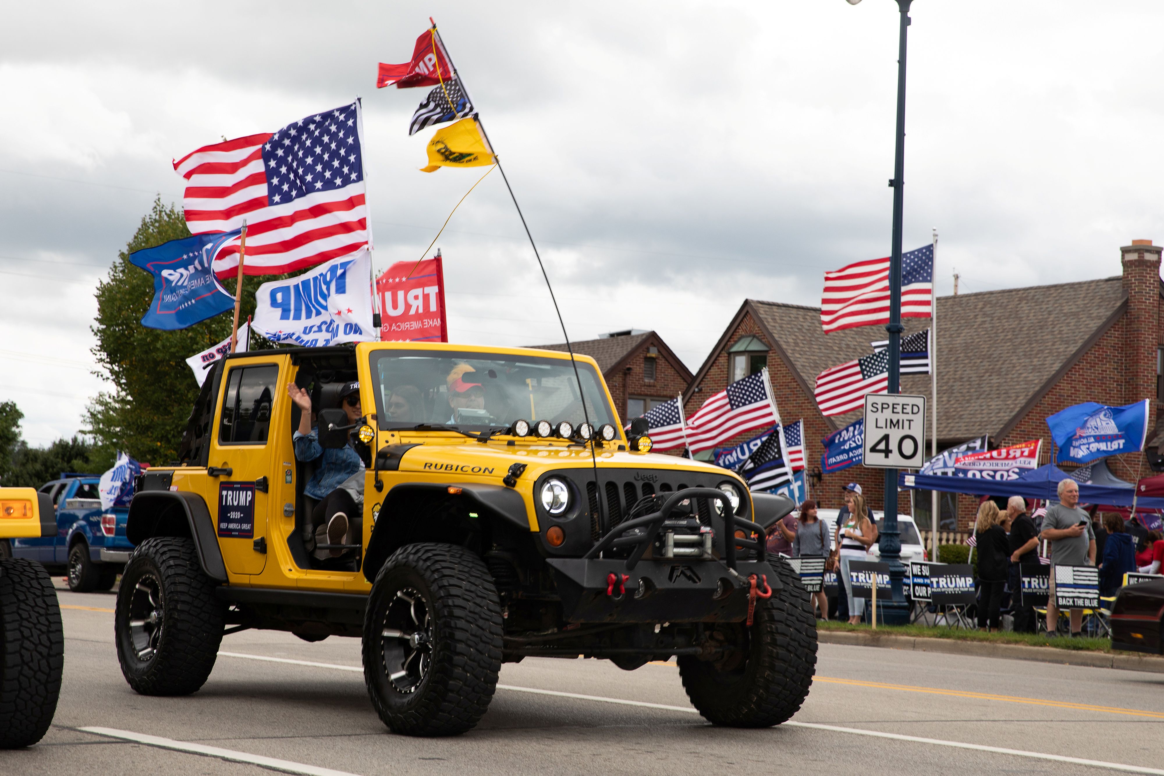Trump fans drove pickups, Mustangs and motorcycles in a classic-car cruise in Frankenmuth, Mich., yesterday.