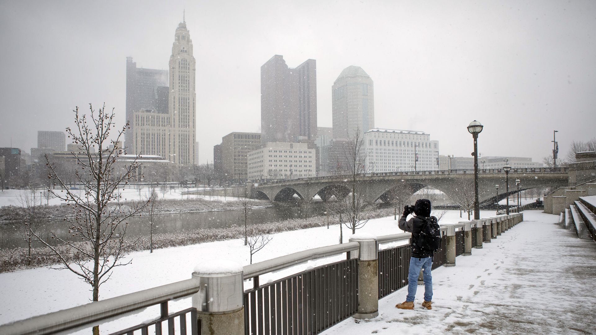 Snow-covered skyline of downtown Columbus on Dec. 16. Photo: Adam Cairns/Columbus Dispatch via Reuters