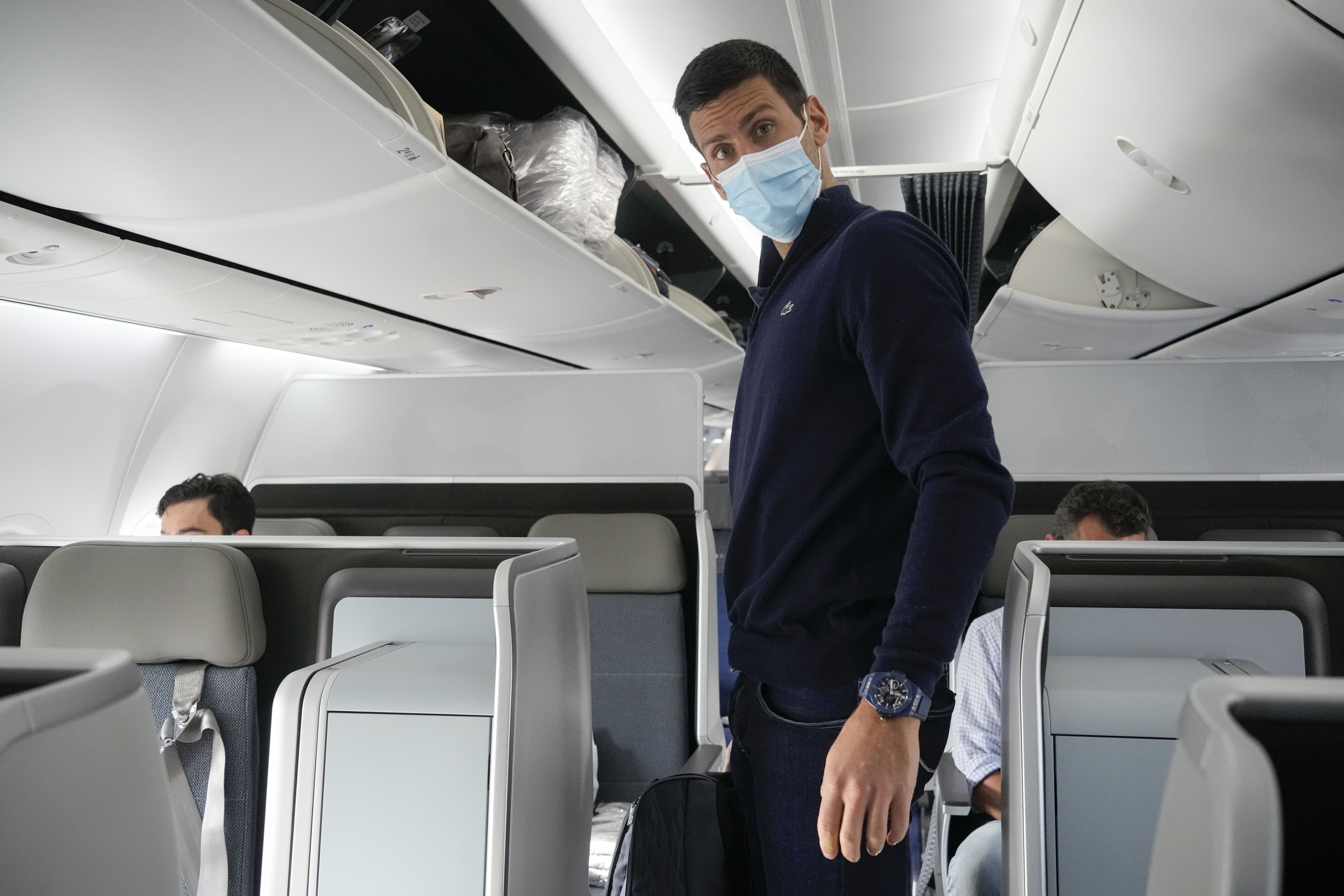 Novak Djokovic takes his seat on a flight from Dubai to his native Belgrade, Serbia, where he landed today after losing his visa fight.