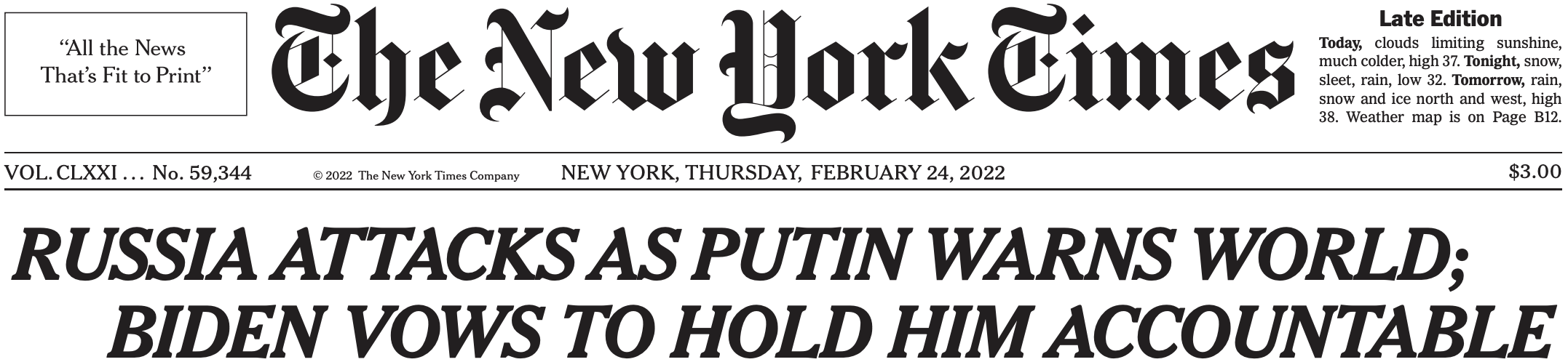Vladimir Putin invaded Ukraine — including attacking the capital, Kyiv — in an overnight barrage that was swift, broad and ruthless. The attack was exactly in line with President Biden's dire forecasts.