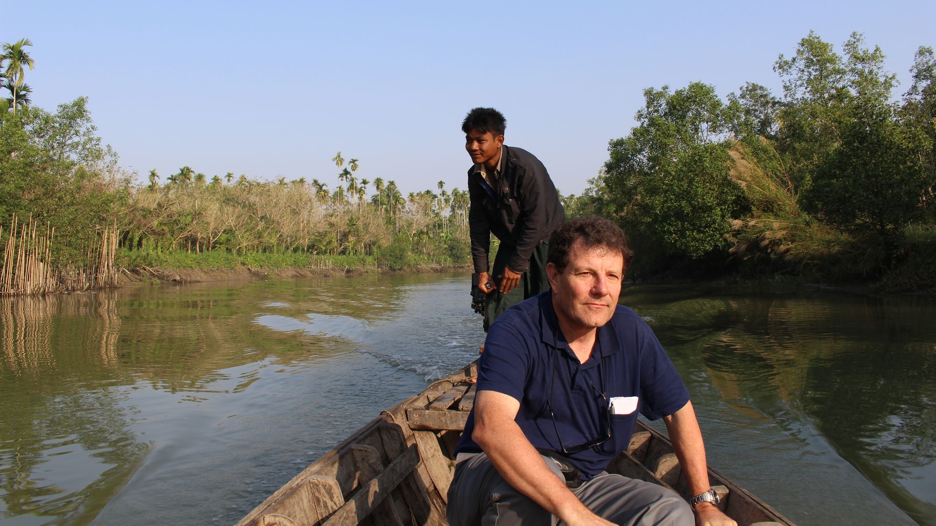 Nick Kristof on the boat he used to get around a police checkpoint (Courtesy Nick Kristof)