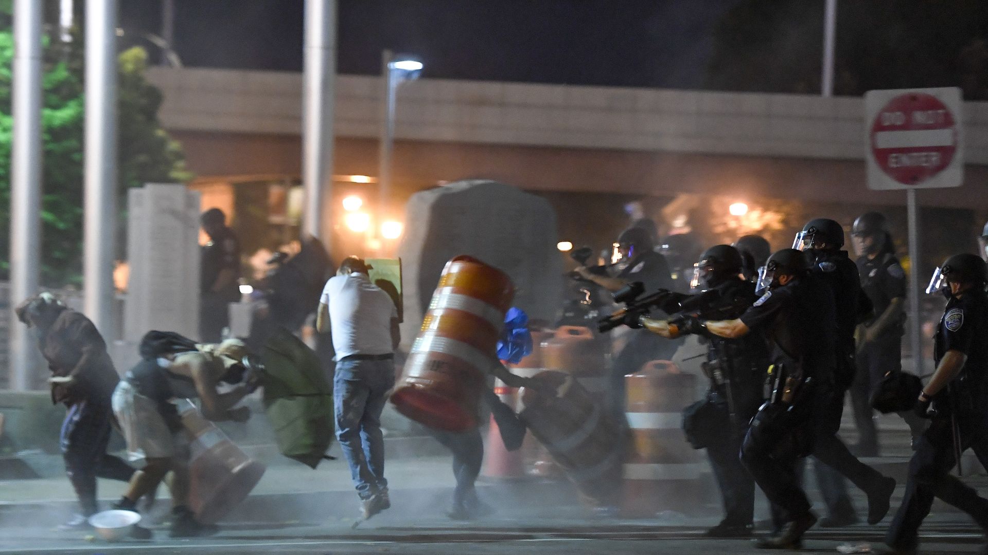 - "A mix of Rochester and New York state police fired volleys of pepper balls, and officers in helmets and face shields, carrying batons, pushed back demonstrators … some lobbing water bottles and shielding themselves with umbrellas."