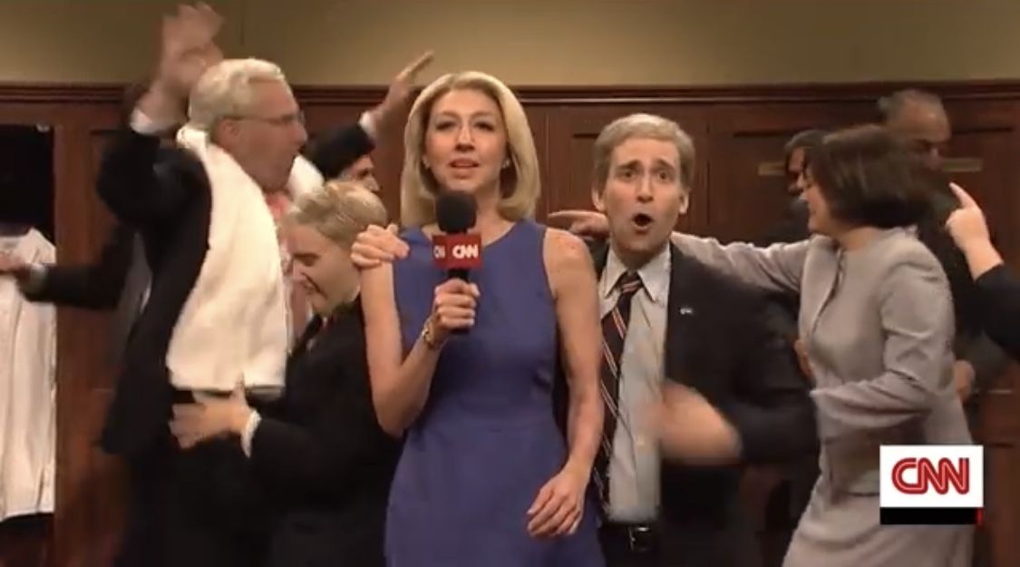 - CNN's Dana Bash captured the nation's mood as cable coverage showed the Senate floor in split screen with a massive demonstration across the street at the Supreme Court: "So many times, we cover stories in Washington that people don't know about, people don't care about. Look at those pictures."