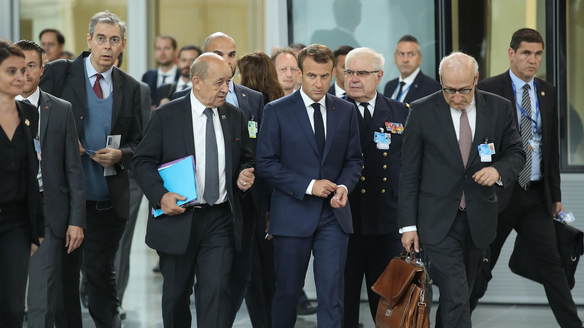 French President Emmanuel Macron arrives today. (Sean Gallup/Getty Images)