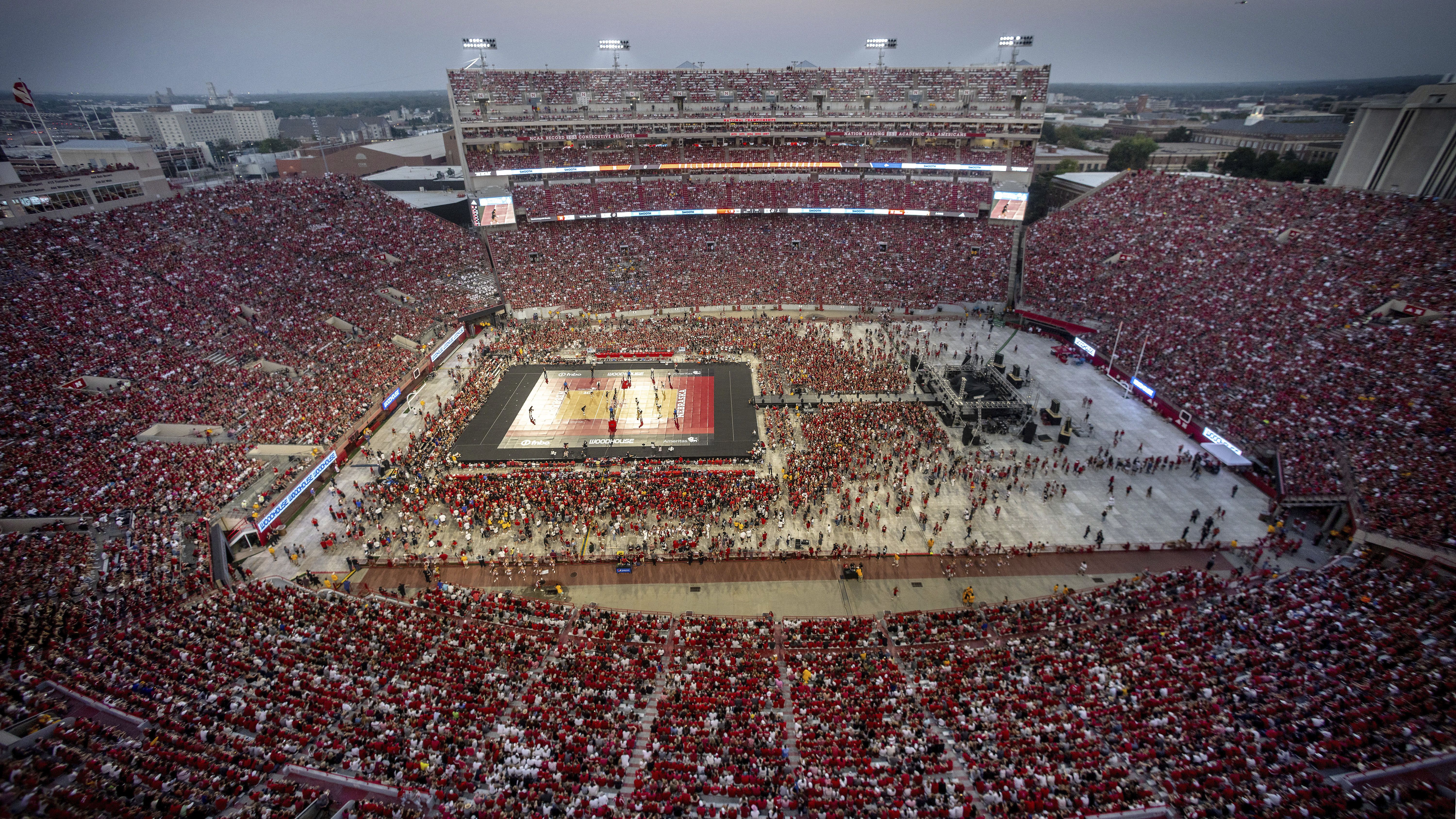 The match obliterated the NCAA attendance record for women's volleyball — 18,755, set last year when Wisconsin played ... Nebraska.