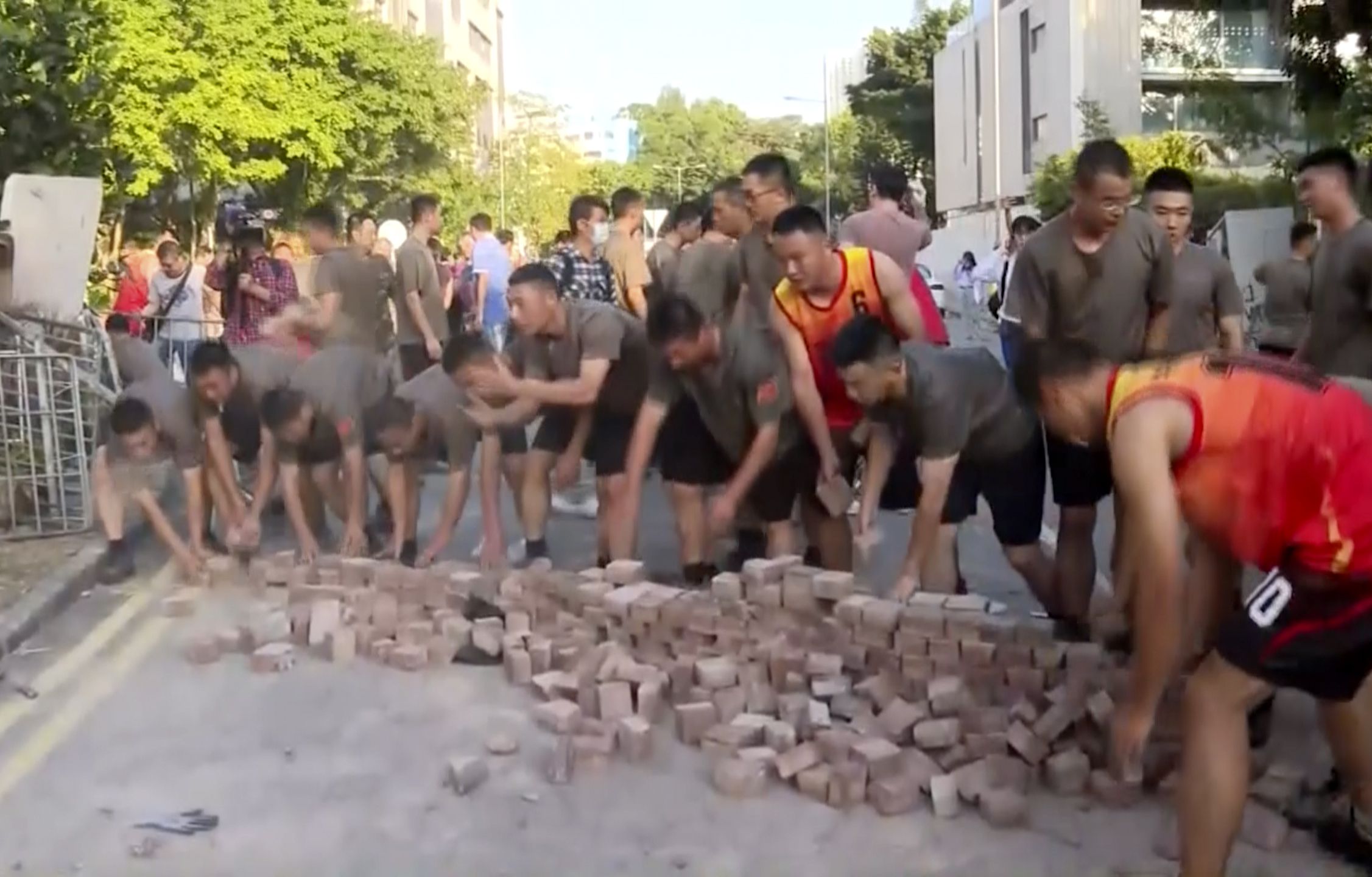 - Dozens of People’s Liberation Army soldiers, dressed in black shorts and olive drab T-shirts, helped street cleaners pick up paving stones, rocks and other obstacles that had stopped traffic.