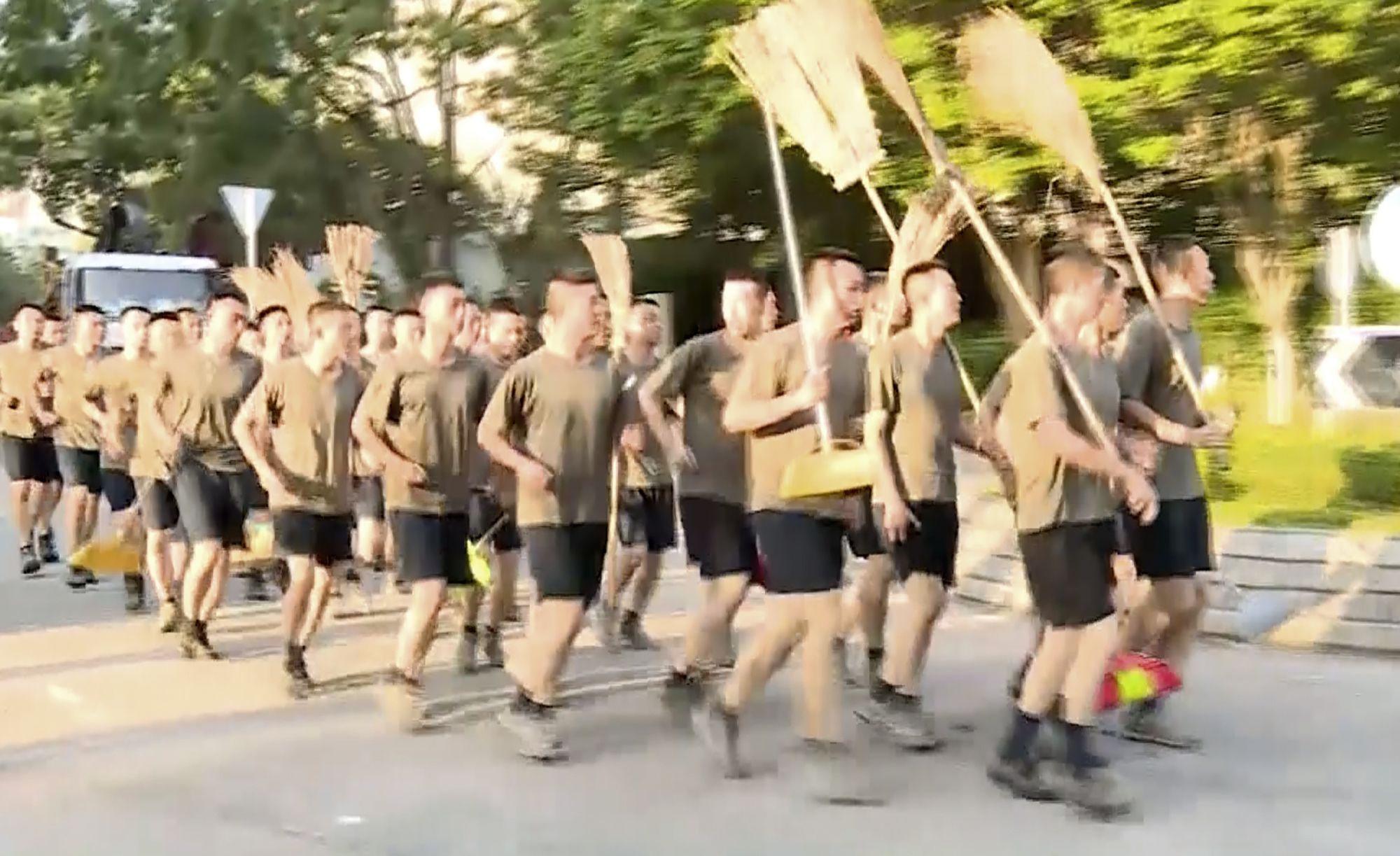 Why it matters: The soldiers, jogging in formation, carrying brooms and singing in cadence, were a rare sight on the streets of the city.