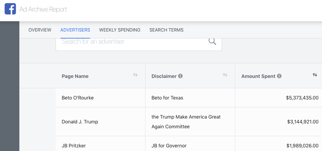 - Beto O'Rourke, the Democratic Senate candidate in Texas, "has spent more on Facebook ads than any other candidate this campaign cycle ... $5.3 million since May."