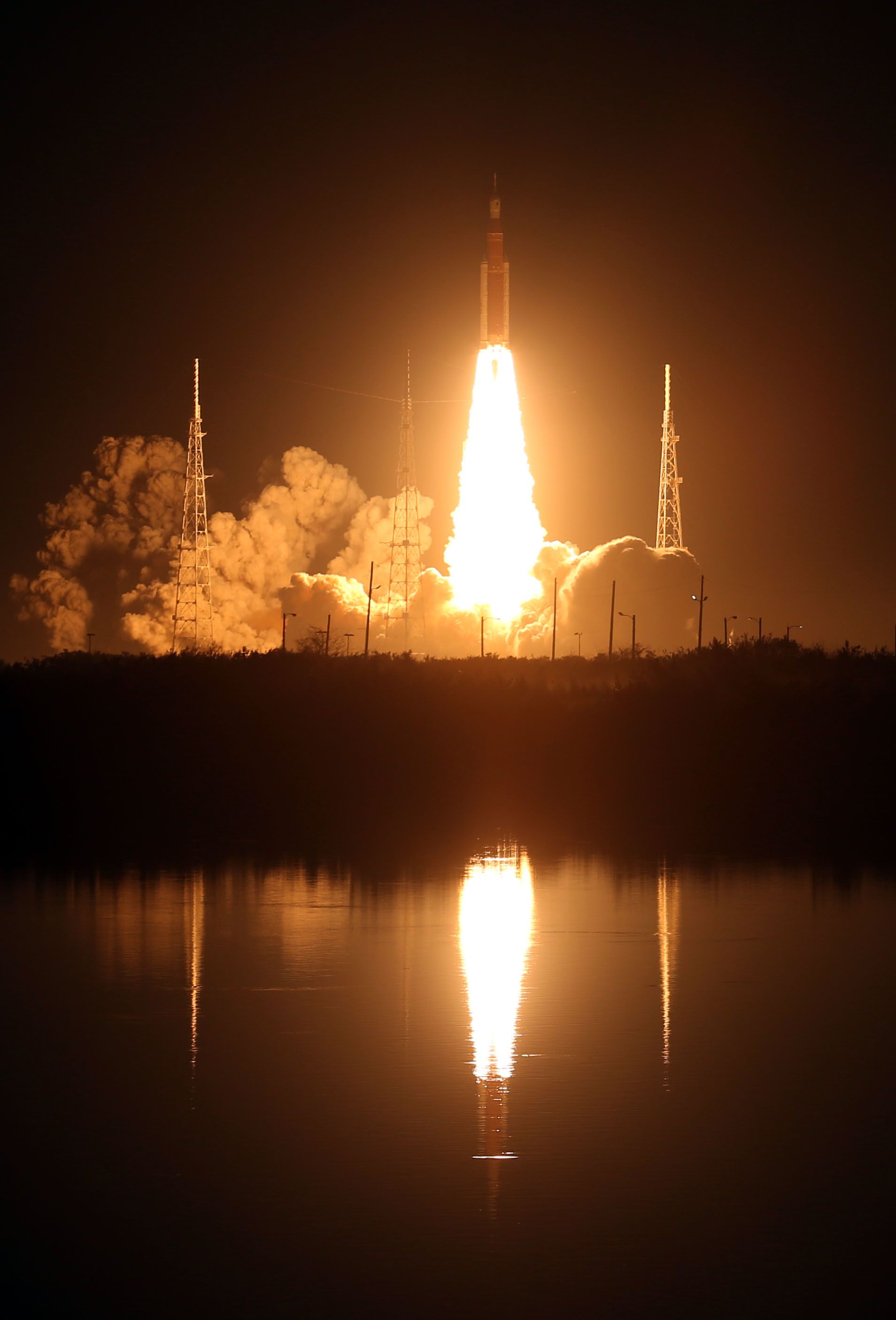 The SLS — which took flight at 1:47 a.m. ET from Cape Canaveral — launched an Orion capsule that will journey around the Moon before coming back to Earth for a splashdown expected in December.