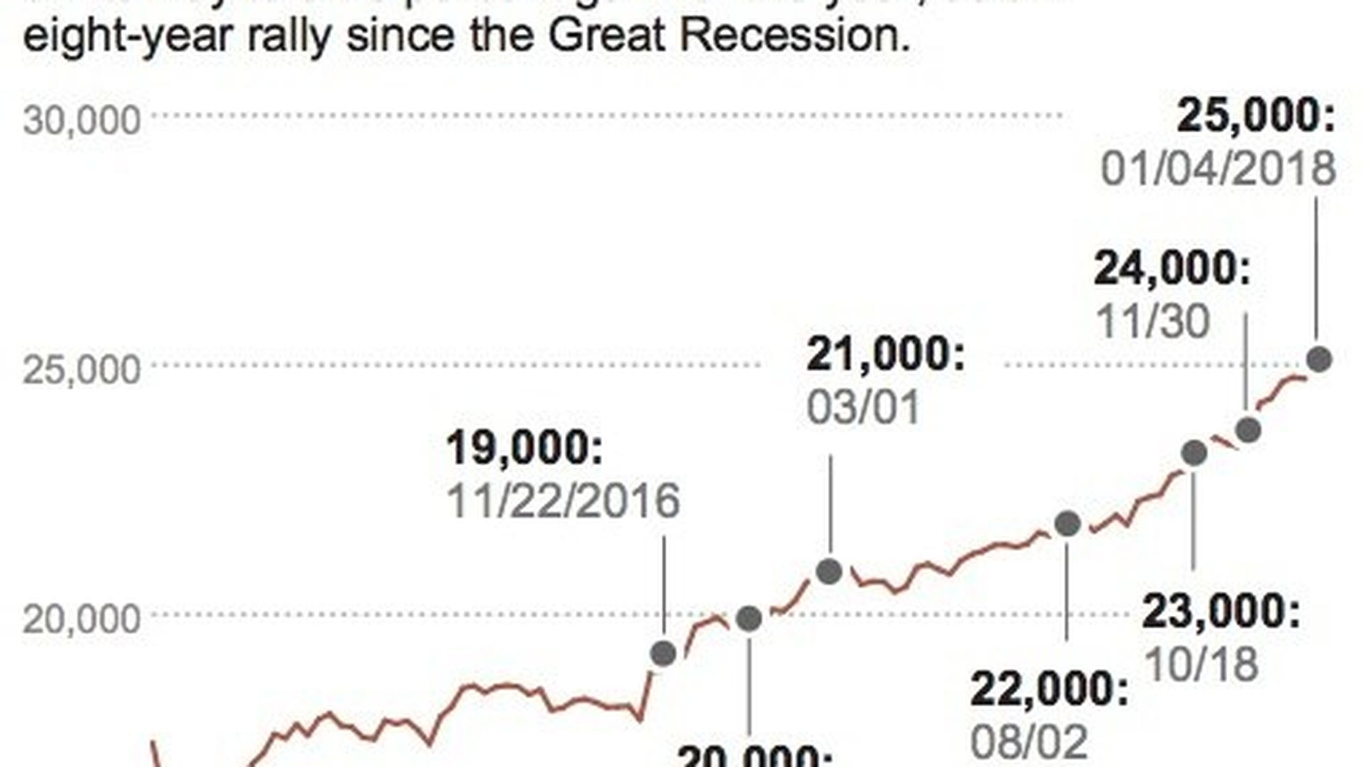 N.Y. Times Quote of the Day ... From a front-page James Stewart "Common Sense" column, "The Dow Hits 25,000: The Party Will End One Day, but When?":