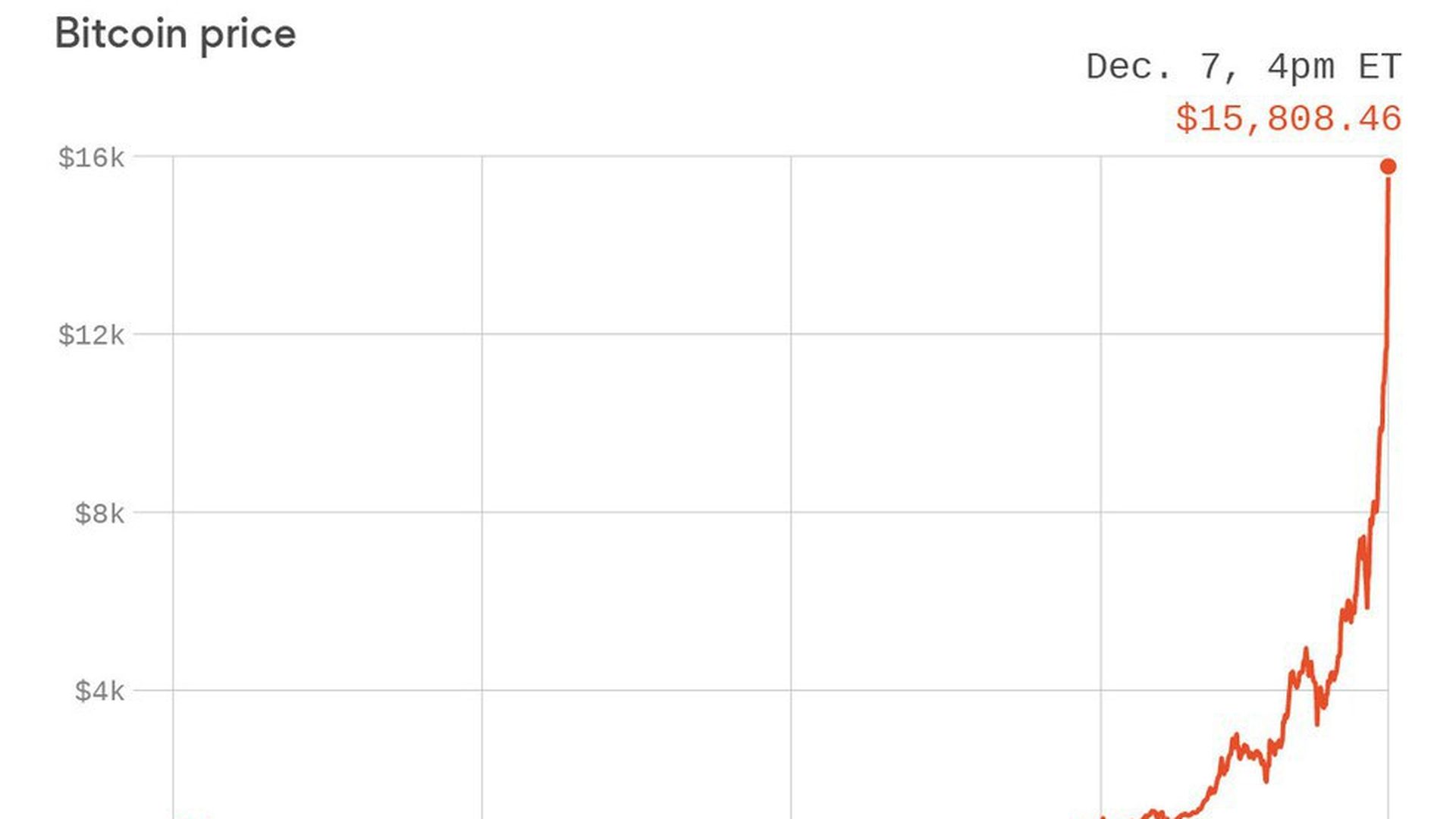 Wall Street Journal lead story: "Bitcoin's Wildest Rise Yet: 40% in 40 Hours."The price of bitcoin is up more than 1,500% percent this year. Next week traders will get a way to bet the price goes down, Axios' Chris Matthews writes: