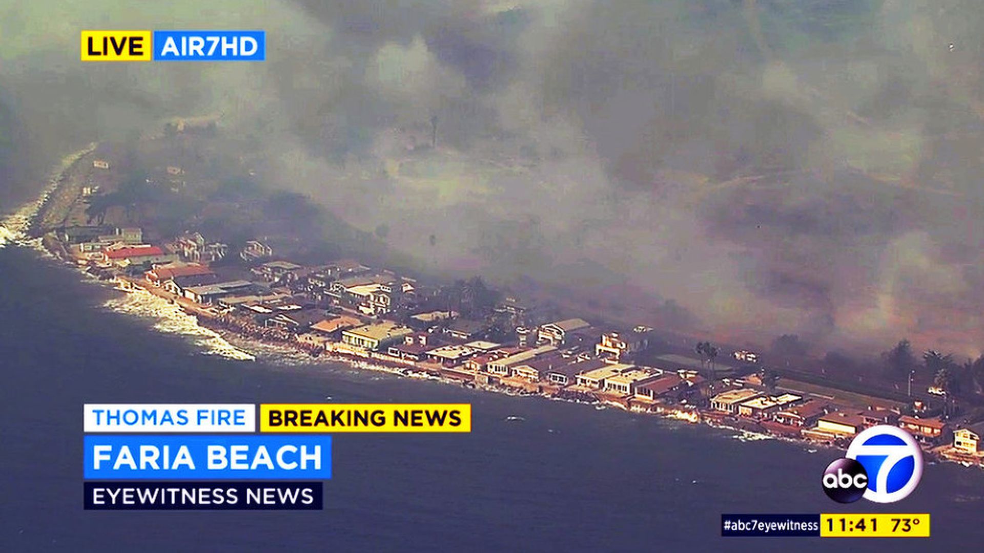 - AP: "[F]irefighters in Ventura tried to corral the largest and most destructive fire in the state, which has destroyed 430 buildings. The so-called Thomas Fire has grown to 180 square miles."