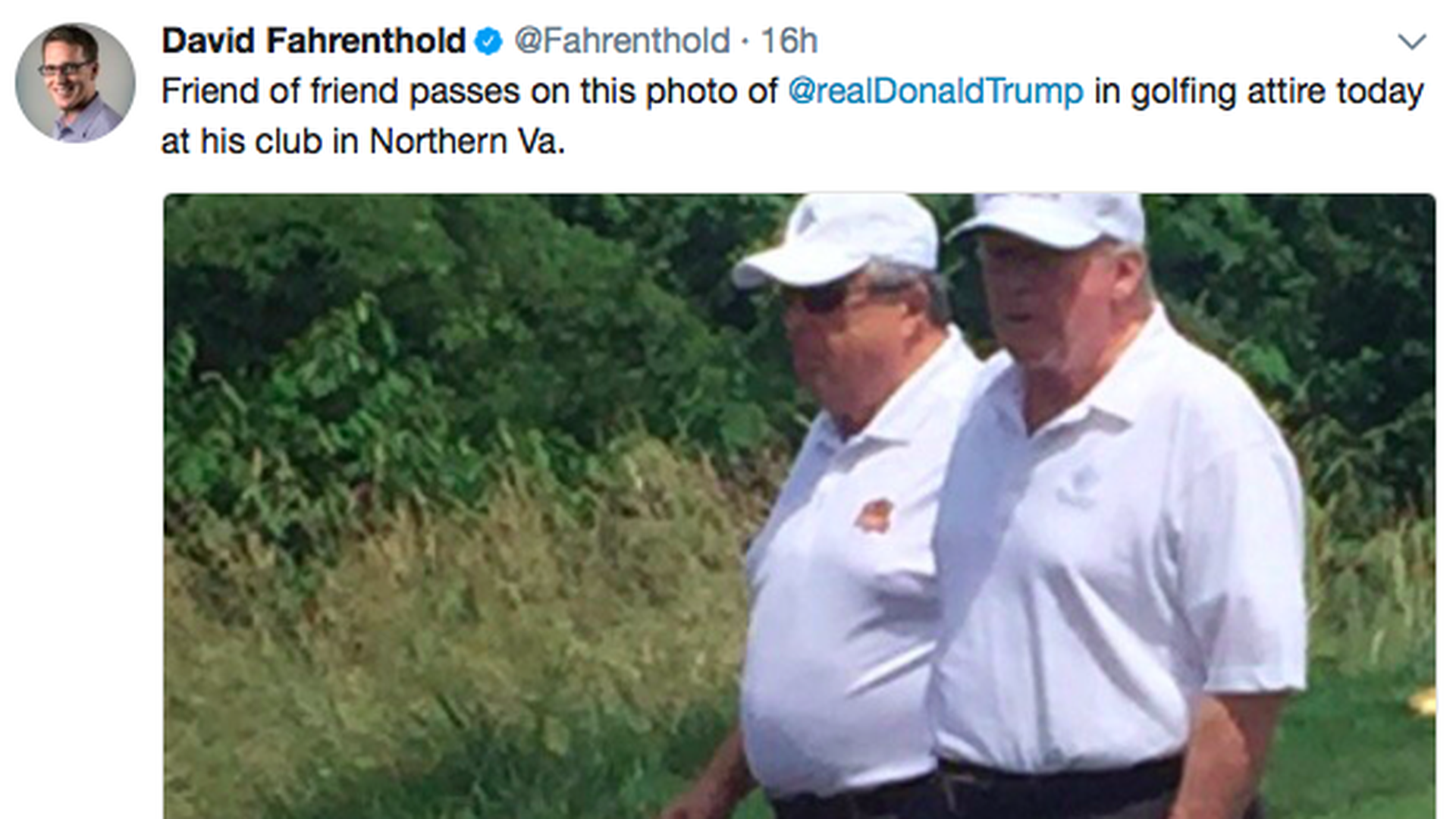 "The person ... who was wearing golf attire was ... Melania Trump's father, Viktor Knavs. ... Still no WH update on whether the president played any golf this morning. Members of Trump National have told your pooler there was a member-member tournament."