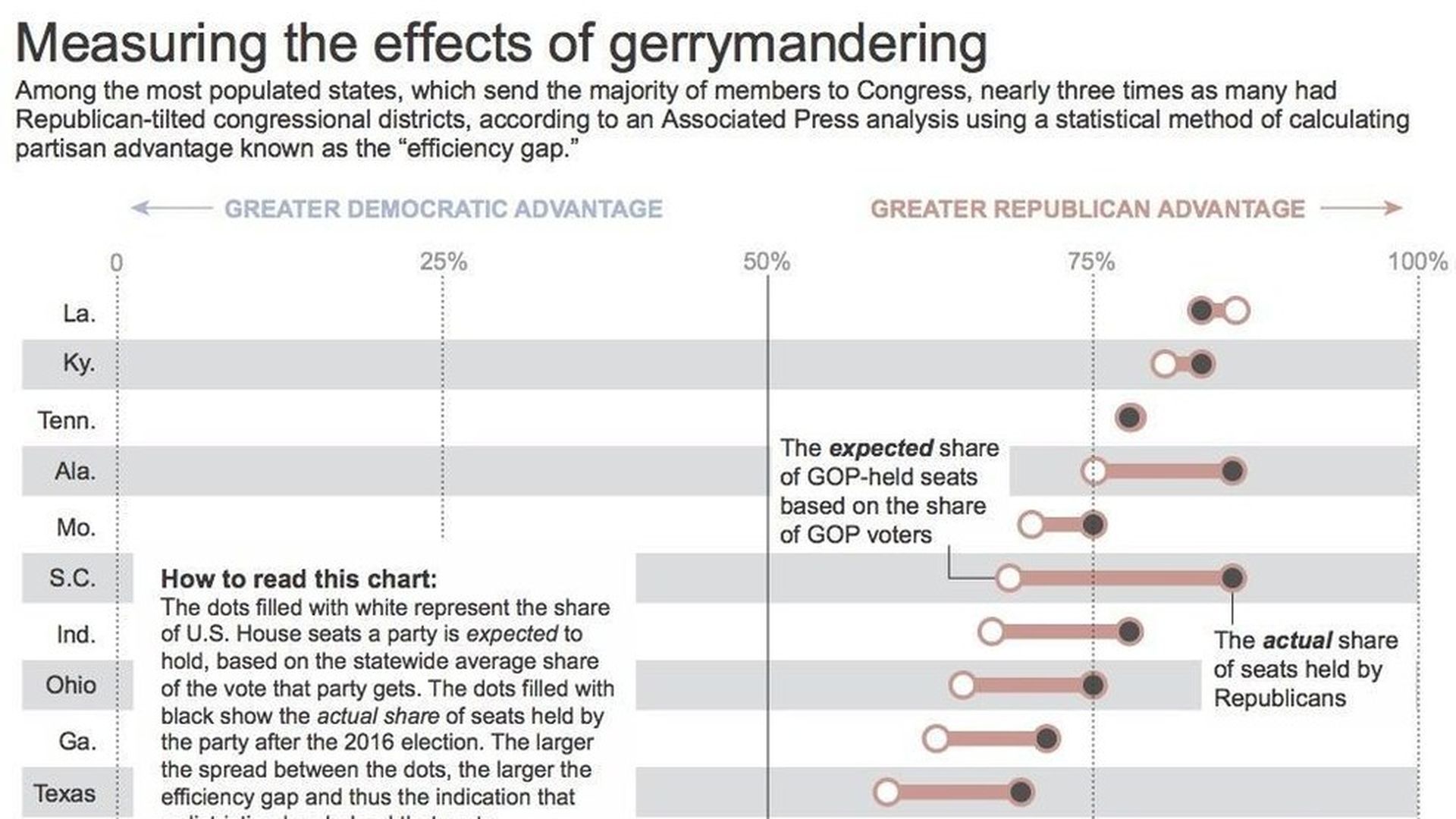 That's the most striking finding of a project the AP has been planning with members for weeks, "Redrawing America: Imbalance of Power ... how gerrymandering benefited GOP in 2016," by David Lieb: