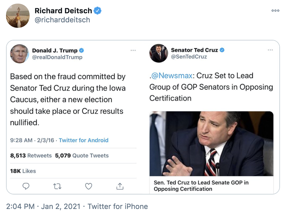 - The Cruz crew is calling for "an emergency 10-day audit of the election returns in the disputed states."