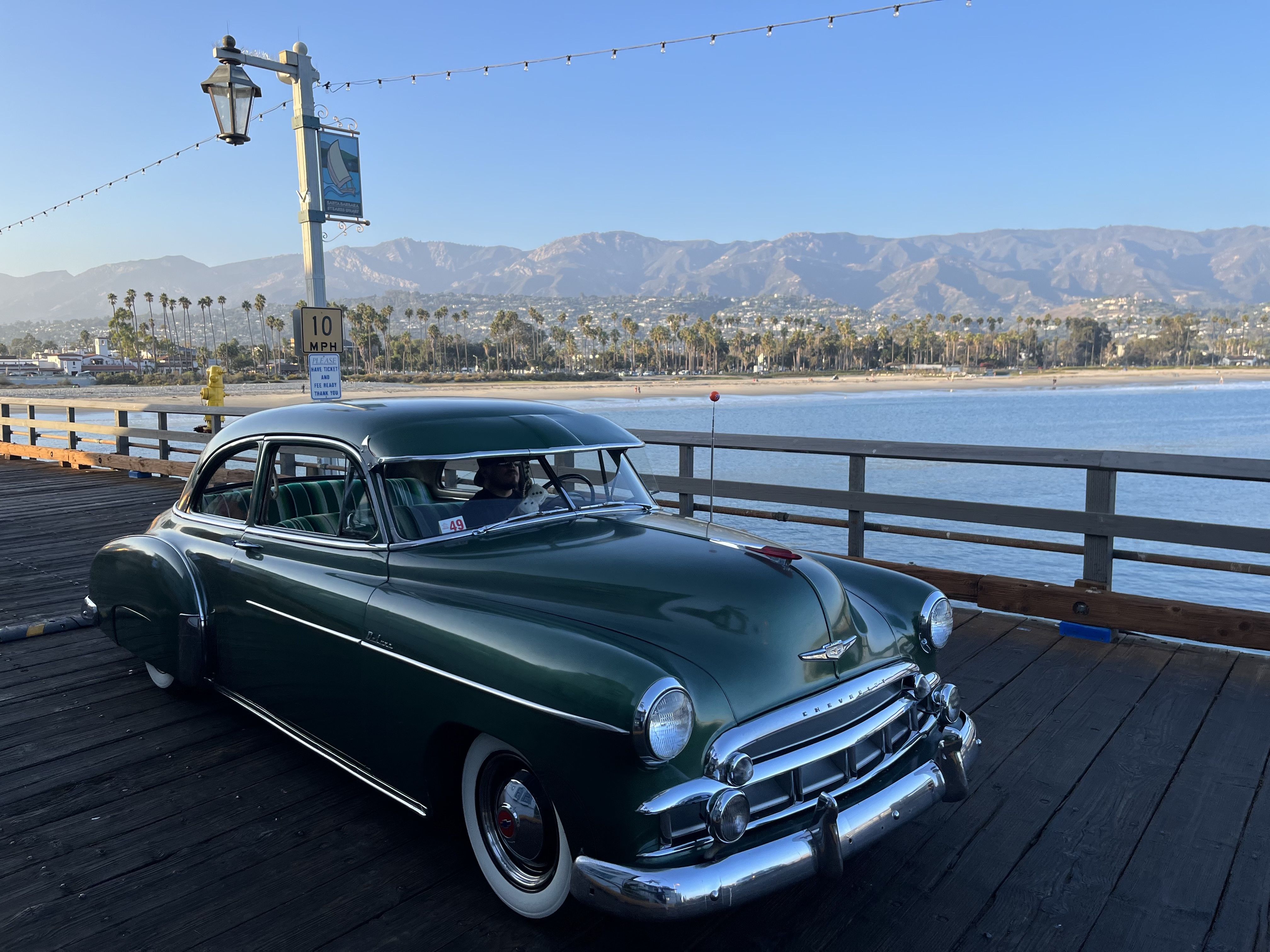 I snapped this 1949 Chevy Deluxe in Santa Barbara, Calif., on Friday evening as it rumbled over Stearns Wharf, which was finished in 1872.