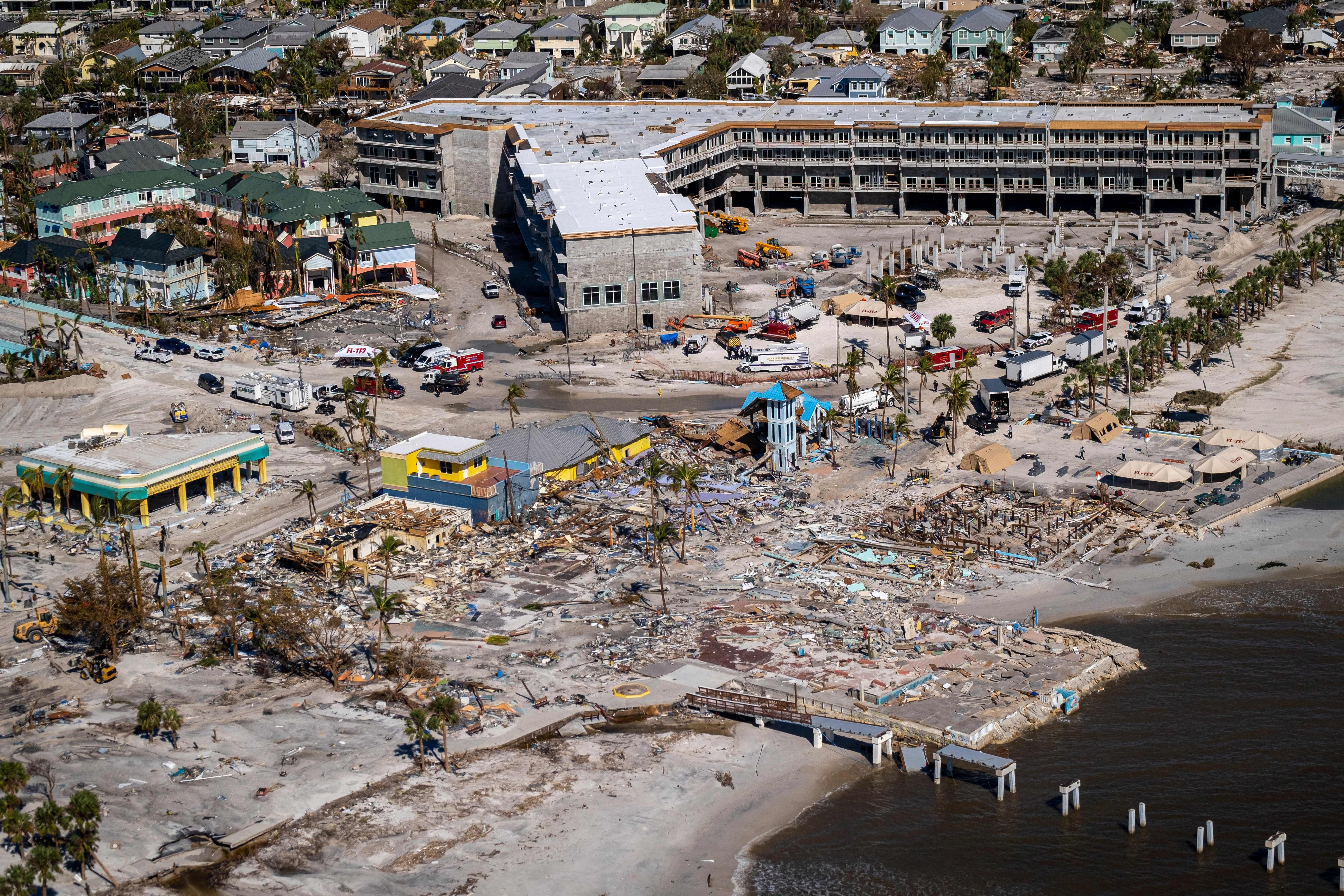 The only bridge to Pine Island is badly damaged. So the island can be reached only by boat or air.