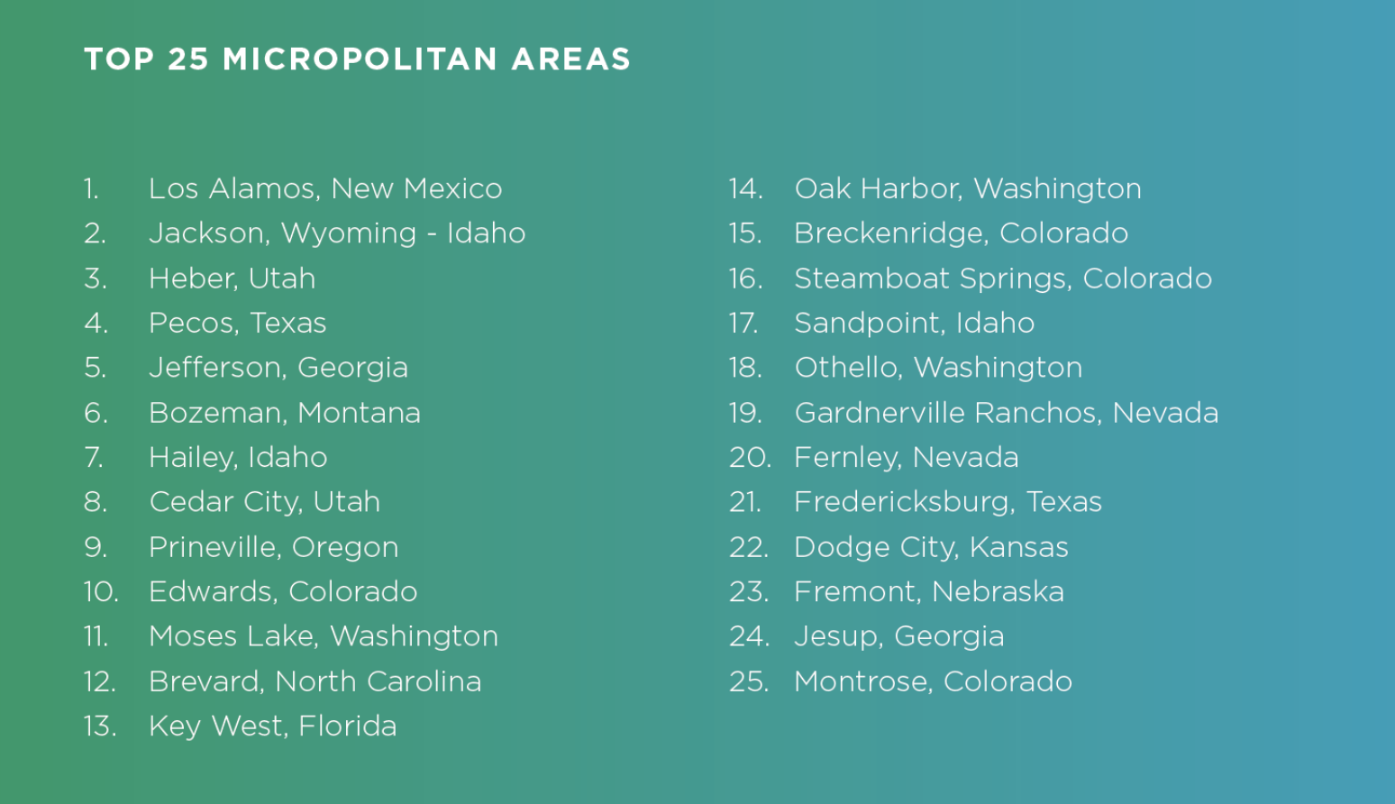 🧠 How it works: Heartland Forward's study — "Most Dynamic Micropolitans" — ranks 536 U.S. towns with 10,000 to 50,000 people.