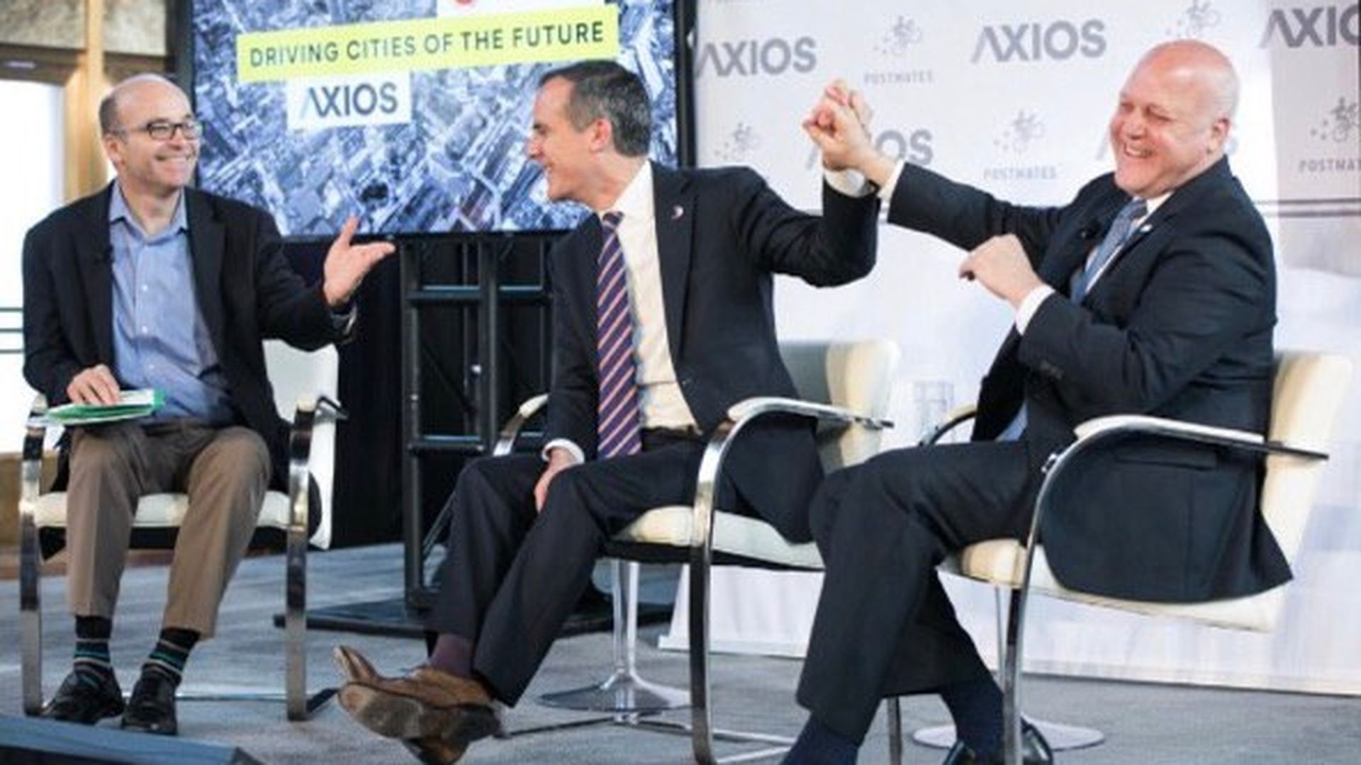 - Riffing spontaneously about panelists who had preceded him, Garcetti said: "It's exciting to hear about [a] hyperloop. But of course if you're the truck driver, you're going: 'Hmm, do I have a job?' It's exciting to hear about the flying ambulance. If you're a firefighter, you're wondering: Will I have a pension?"