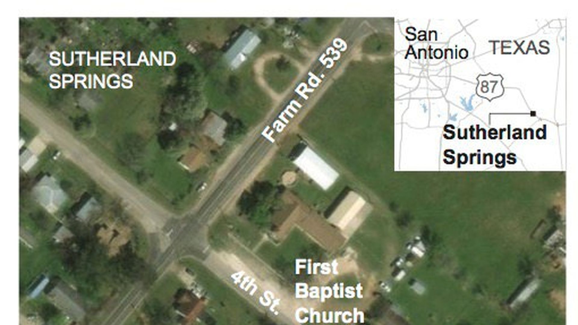 - The gunman died shortly after the attack; unclear if killed by police or himself. He was identified as Devin Patrick Kelley, 26, who had served in the Air Force and was court-martialed and discharged in 2012 on charges of assaulting his wife and child.