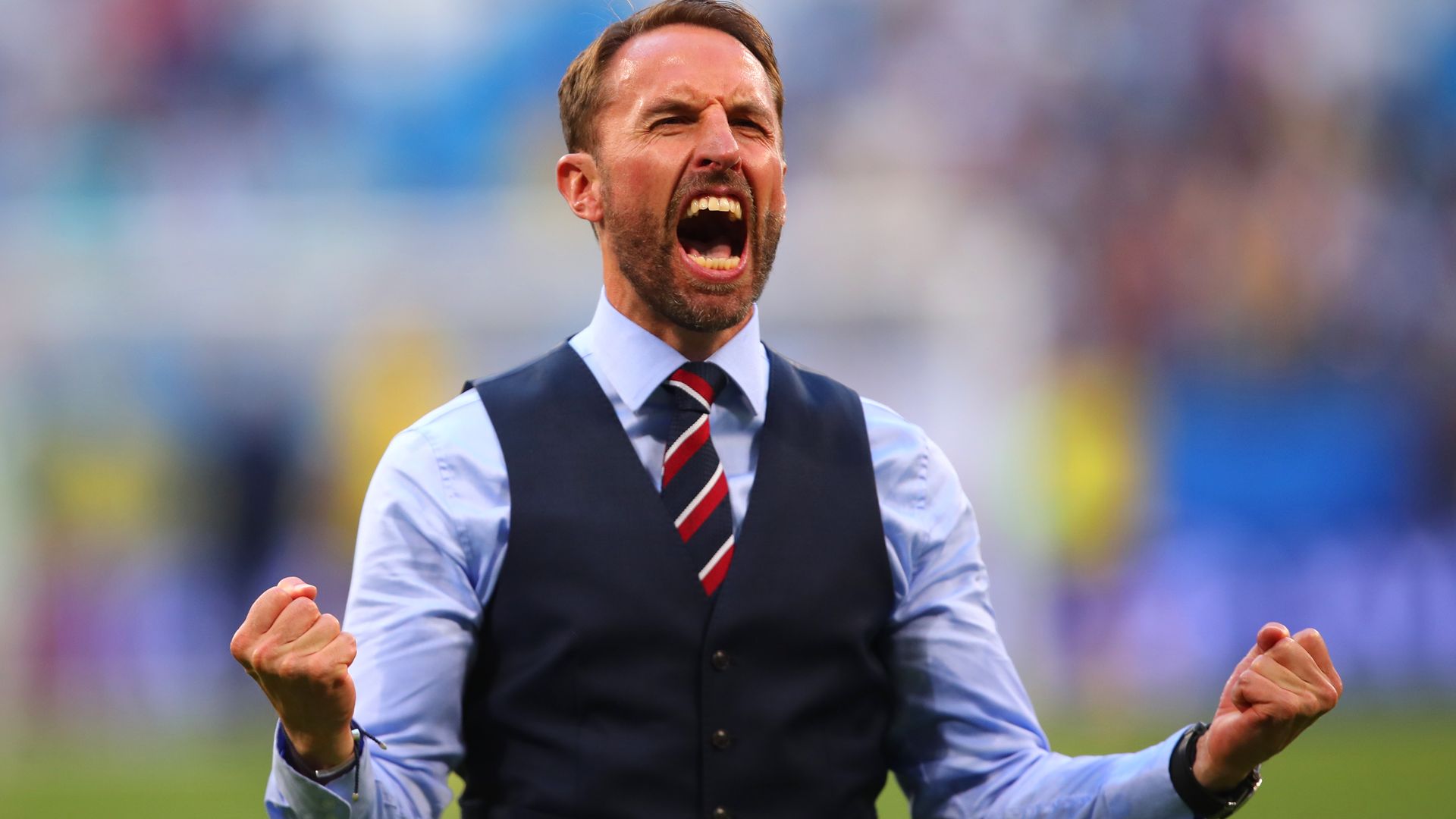 England manager Gareth Southgate celebrates his team's win over Sweden yesterday. (Robbie Jay Barratt - AMA/Getty Images)