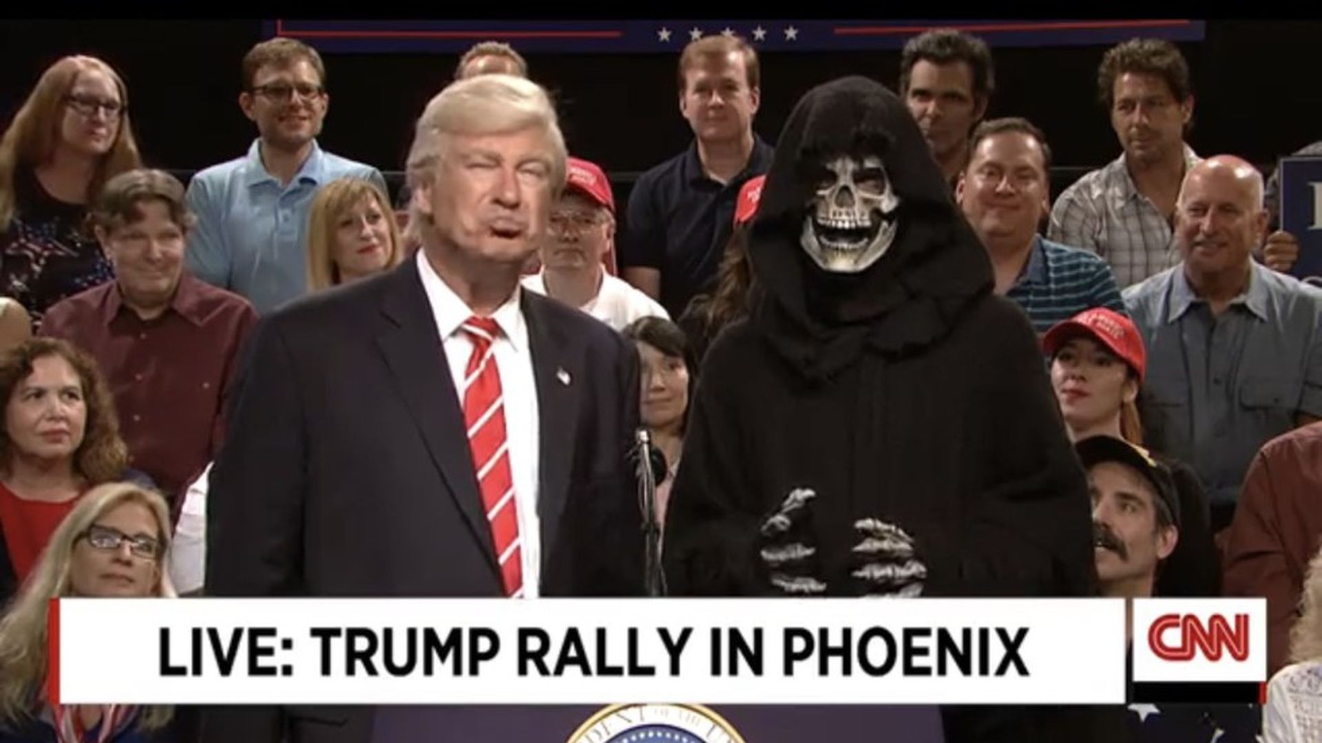 Alec Baldwin returned for a "Weekend Update" special from "Saturday Night Live," with the cold open from the Phoenix rally: