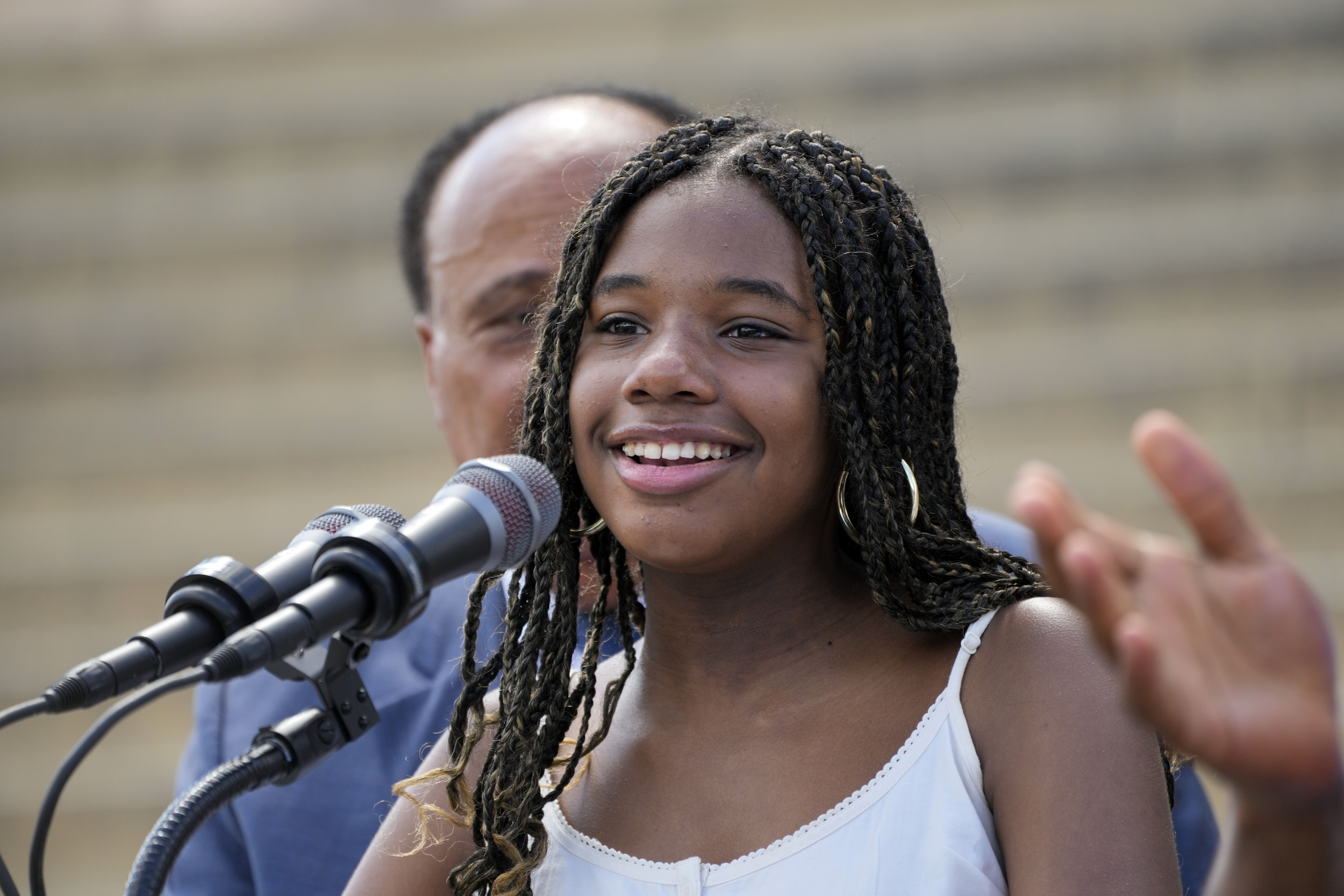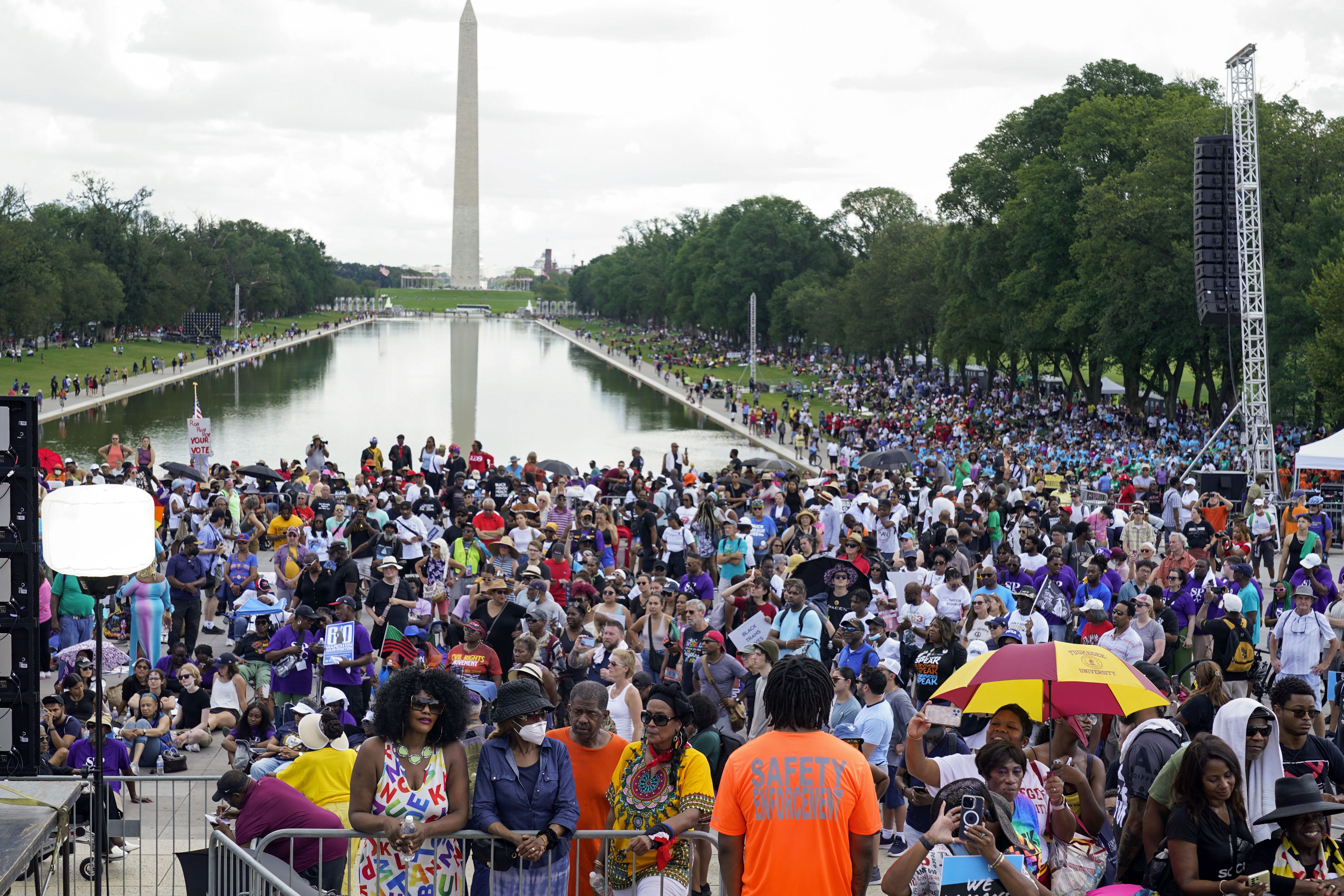 Yolanda King, the 15-year-old granddaughter of the Rev. Martin Luther King, Jr., roused marchers with remarks delivered from the same spot her grandfather gave the "I Have A Dream" speech in 1963, AP notes.