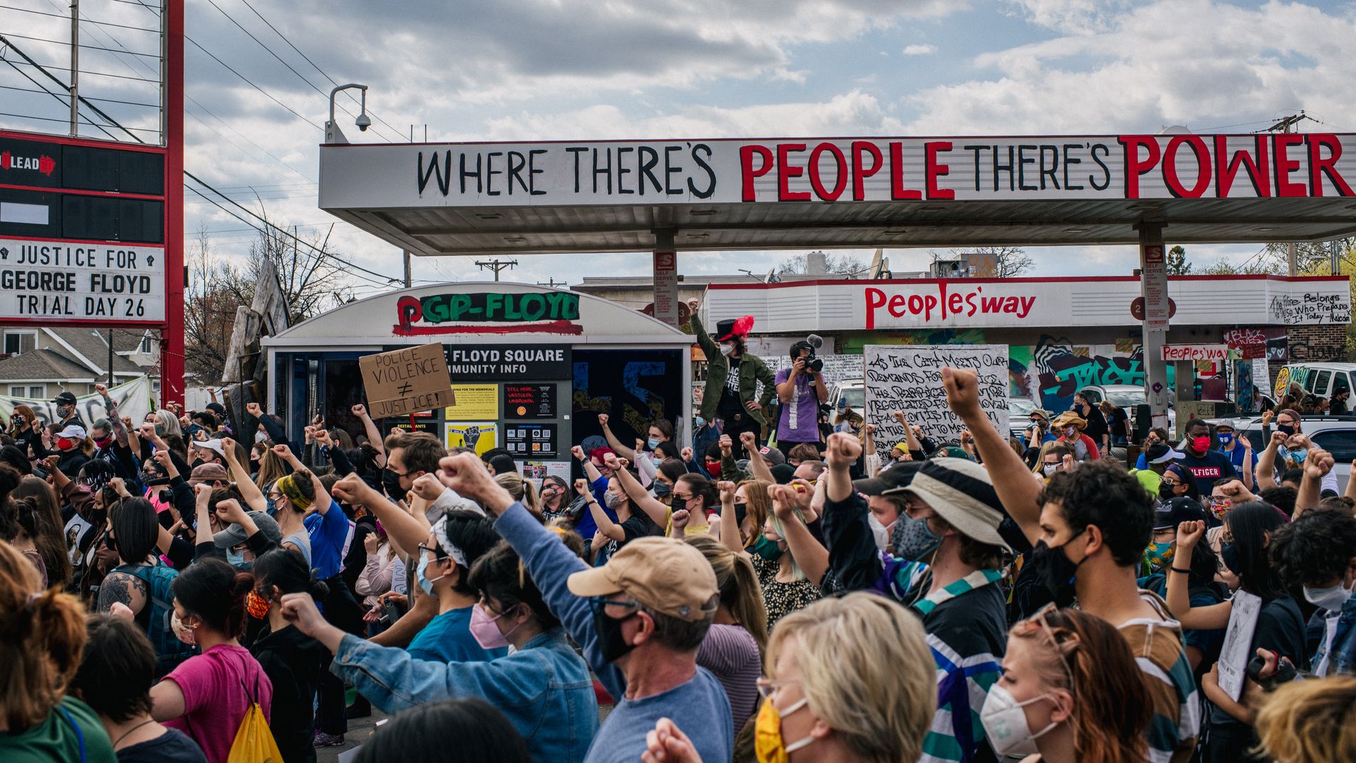 People rallied yesterday at 38th and Chicago, where George Floyd died. Photo: Brandon Bell/Getty Images
