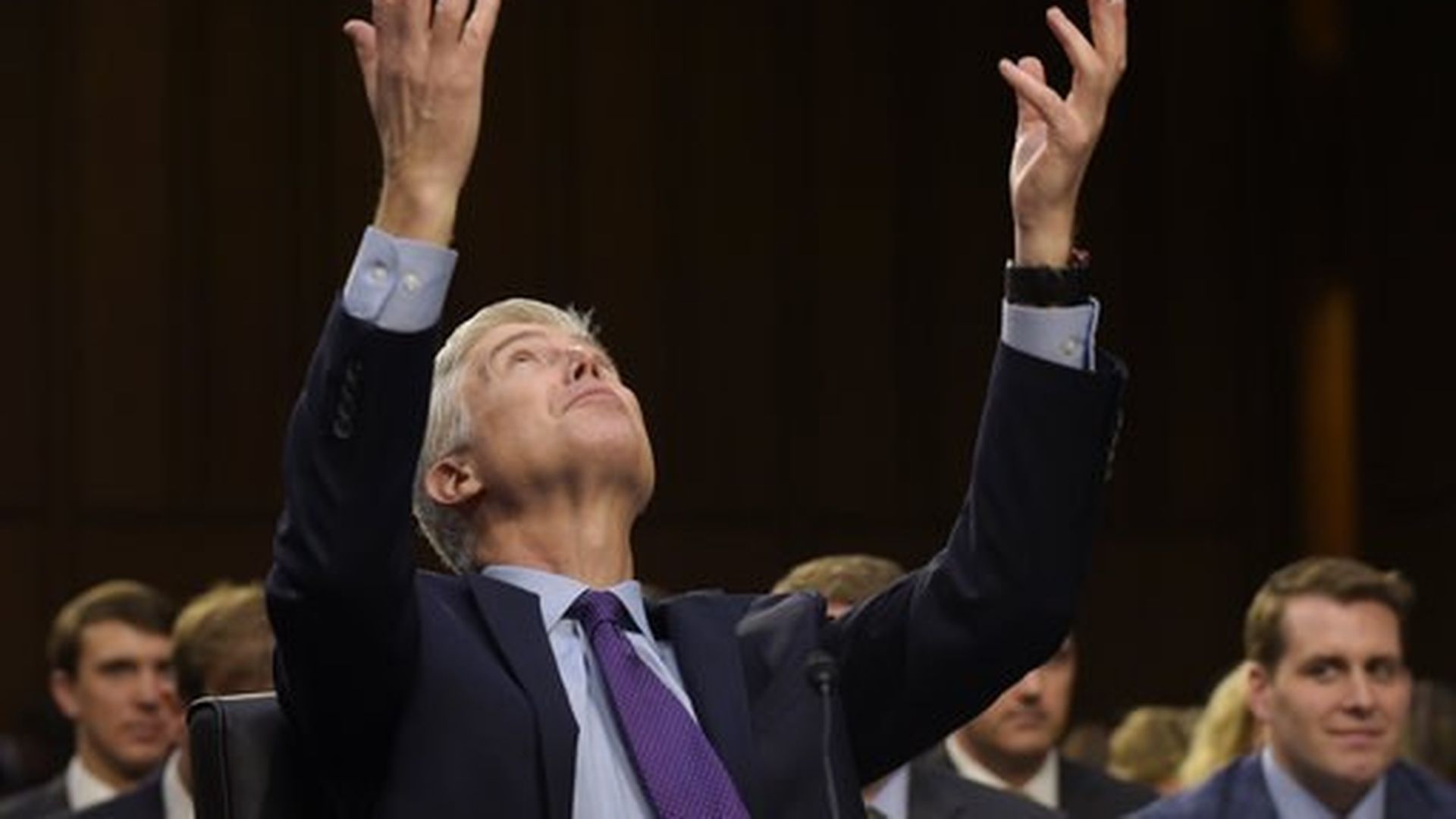 An analog clock with only two symbols instead of twelve: the symbols read 'AM' and 'PM'.
