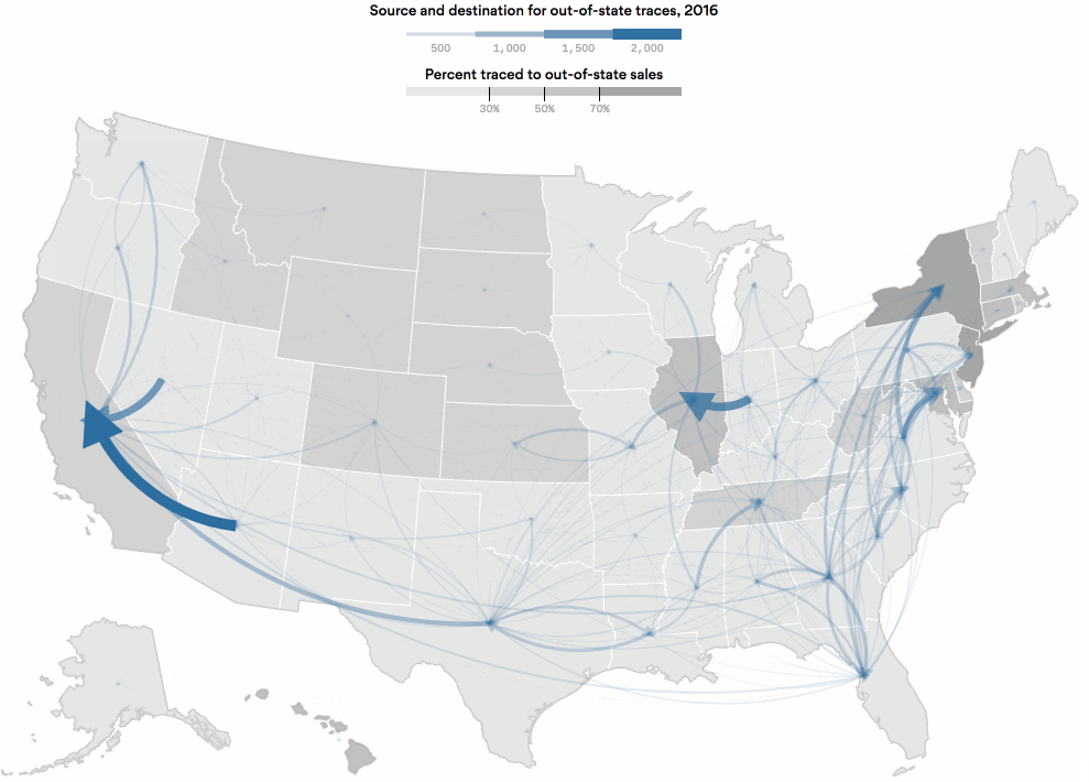 - This interactive map by Axios' Chris Canipe shows the pattern of how guns move.