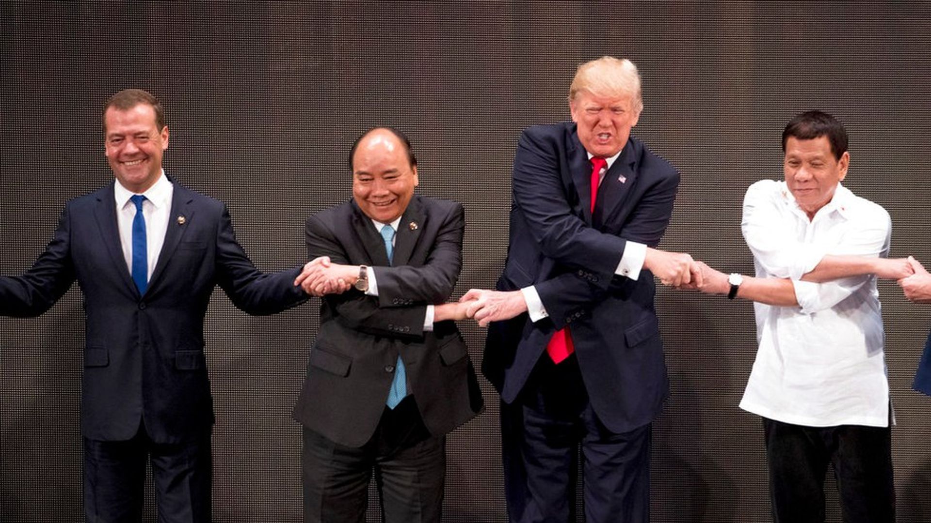 "Trump repeatedly praised Philippine President Rodrigo Duterte, pointedly calling him by his first name, sharing a joke about the media," AP reports from Manila, the Phillippines:
