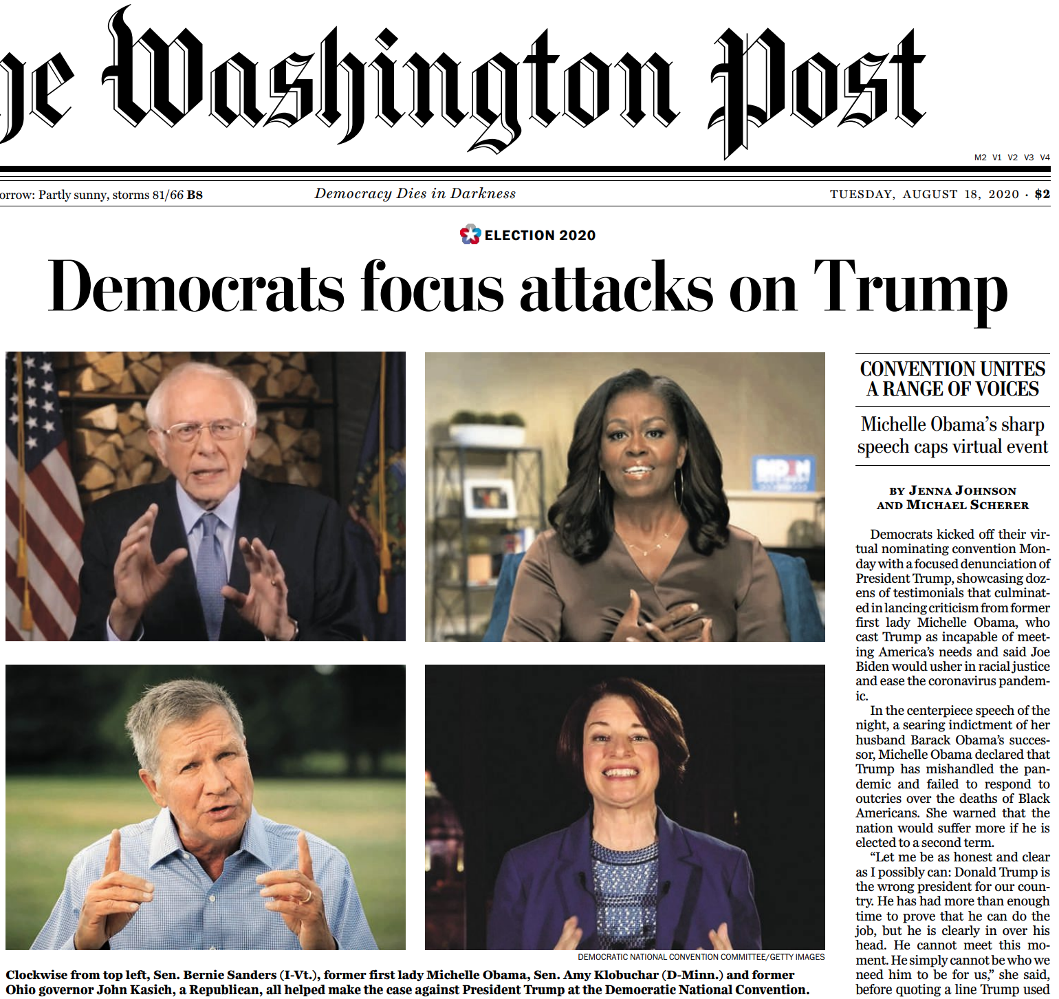 Michelle Obama owned the night, and used a line from President Trump’s "Axios on HBO" interview as a rapier: "[H]e is clearly in over his head. He cannot meet this moment. He simply cannot be who we need him to be for us. It is what it is."