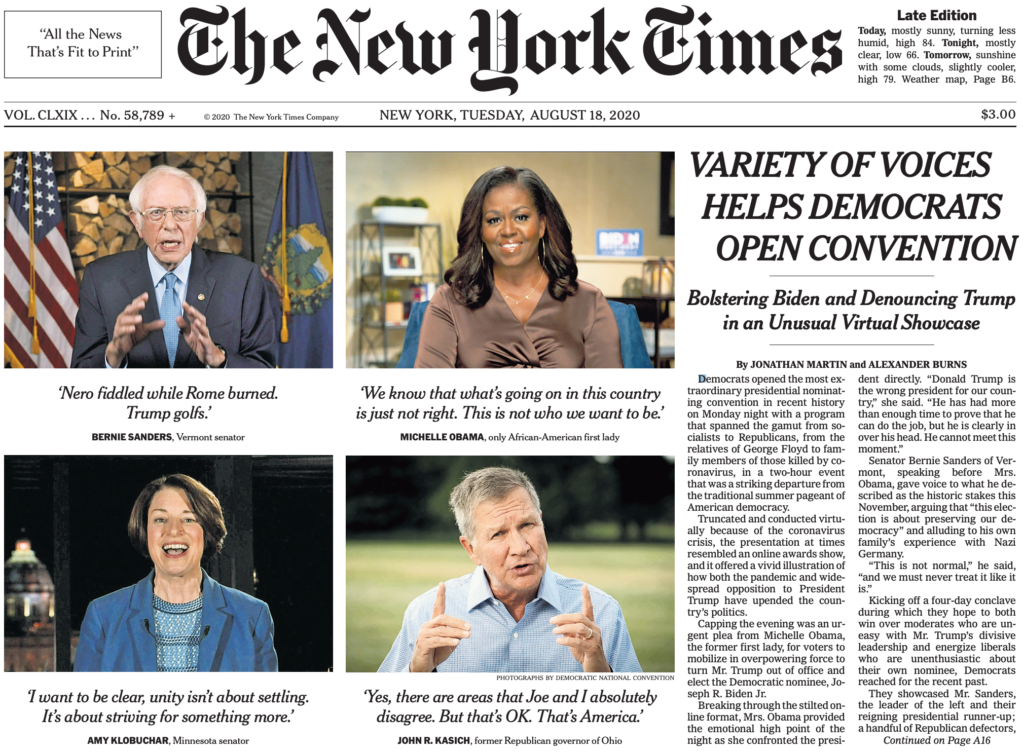 On opening night of their awkward but stirring virtual convention, Democrats prioritized racial justice along with the pandemic and the recession.