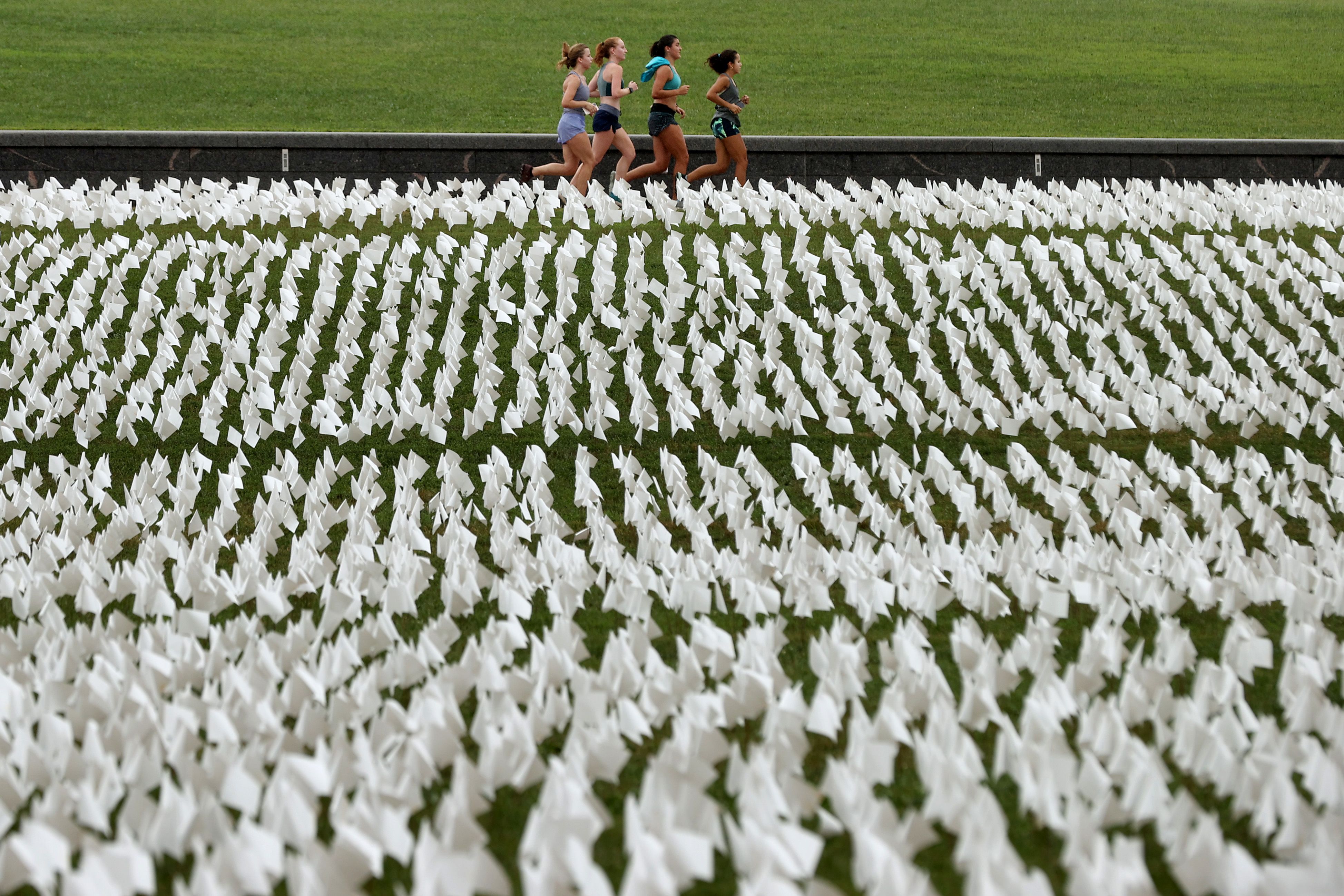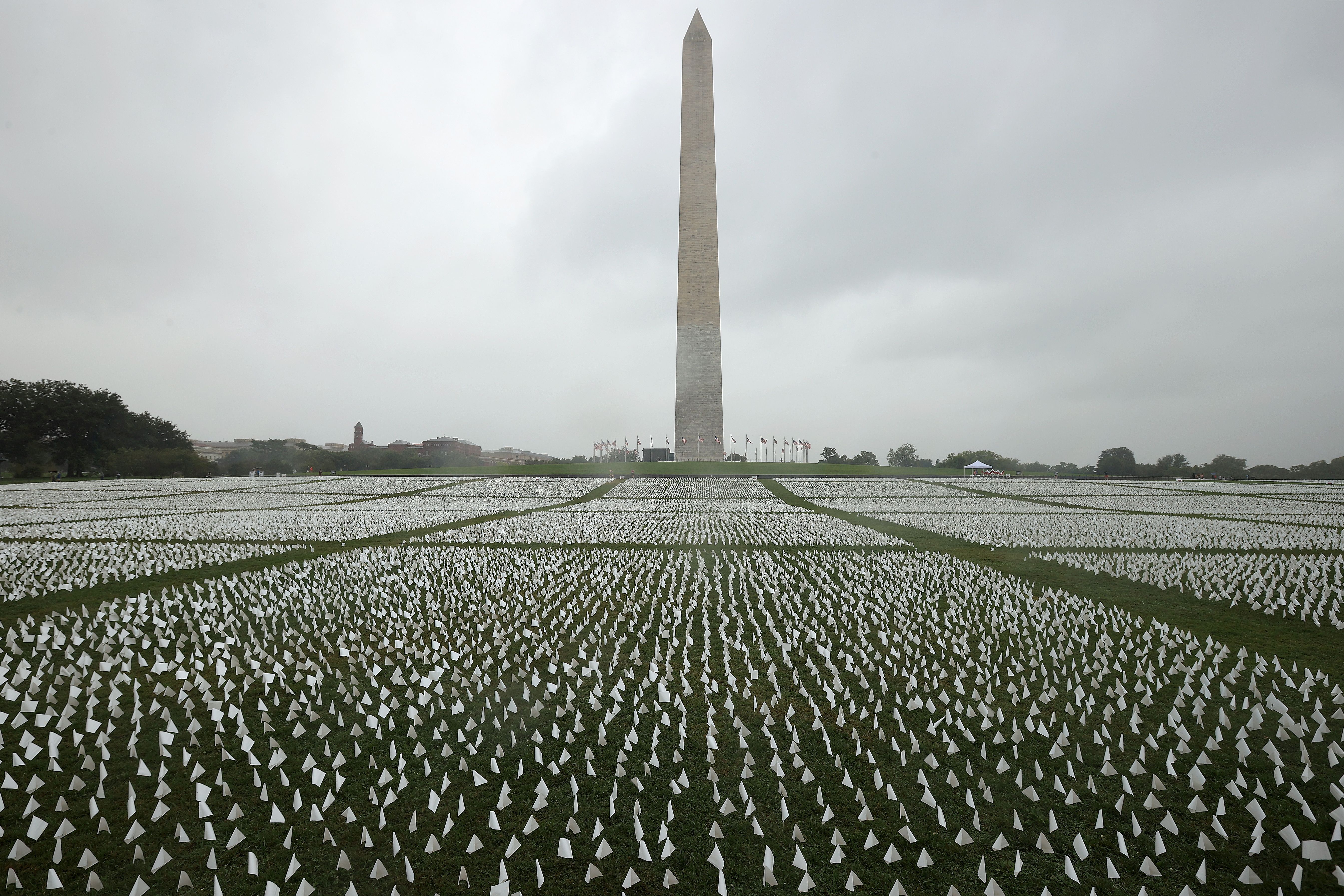 This art installation on 20 acres of the National Mall includes 660,000+ white plastic flags, commemorating Americans who have died of COVID.