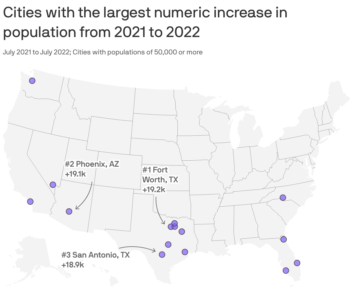 - Of the nine fastest-growing cities in the South, six were in Texas.