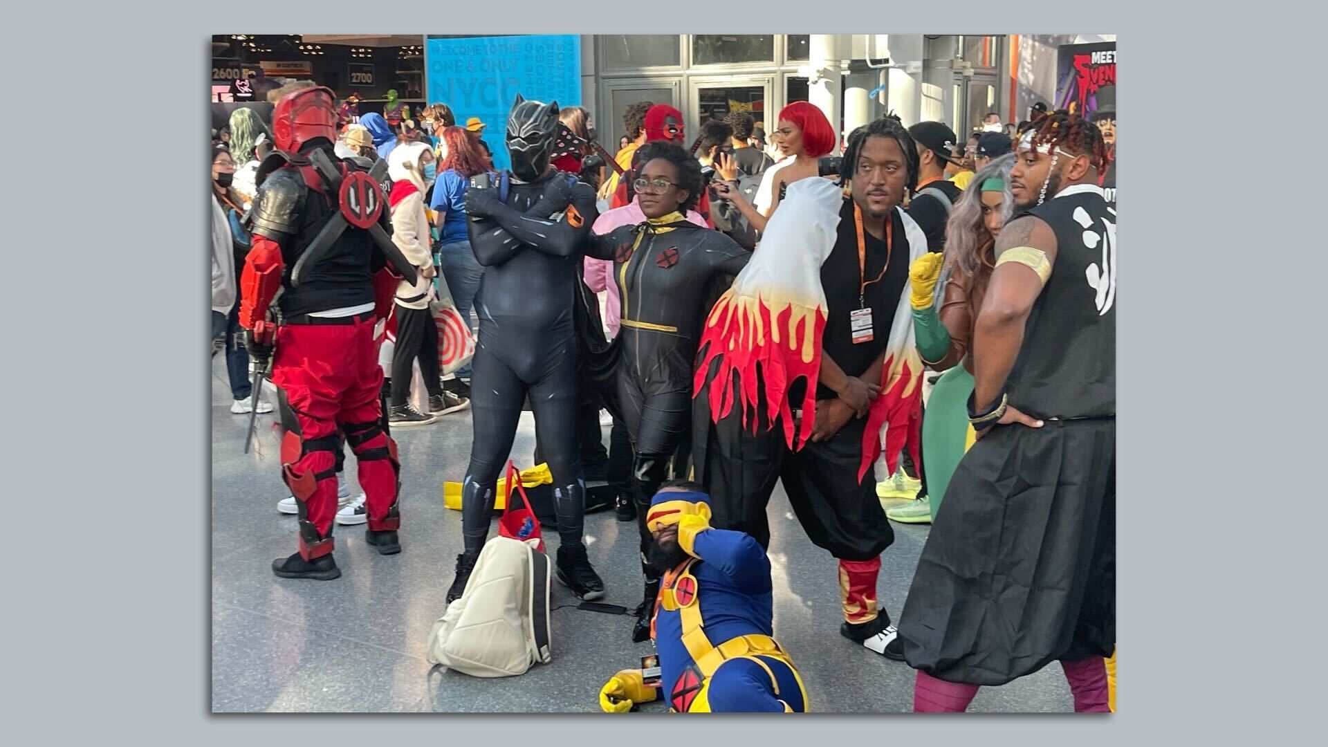 Comic Con participants dressed up as characters from "Black Panther" and "X-Men." Photo: Javier E. David/Axios
