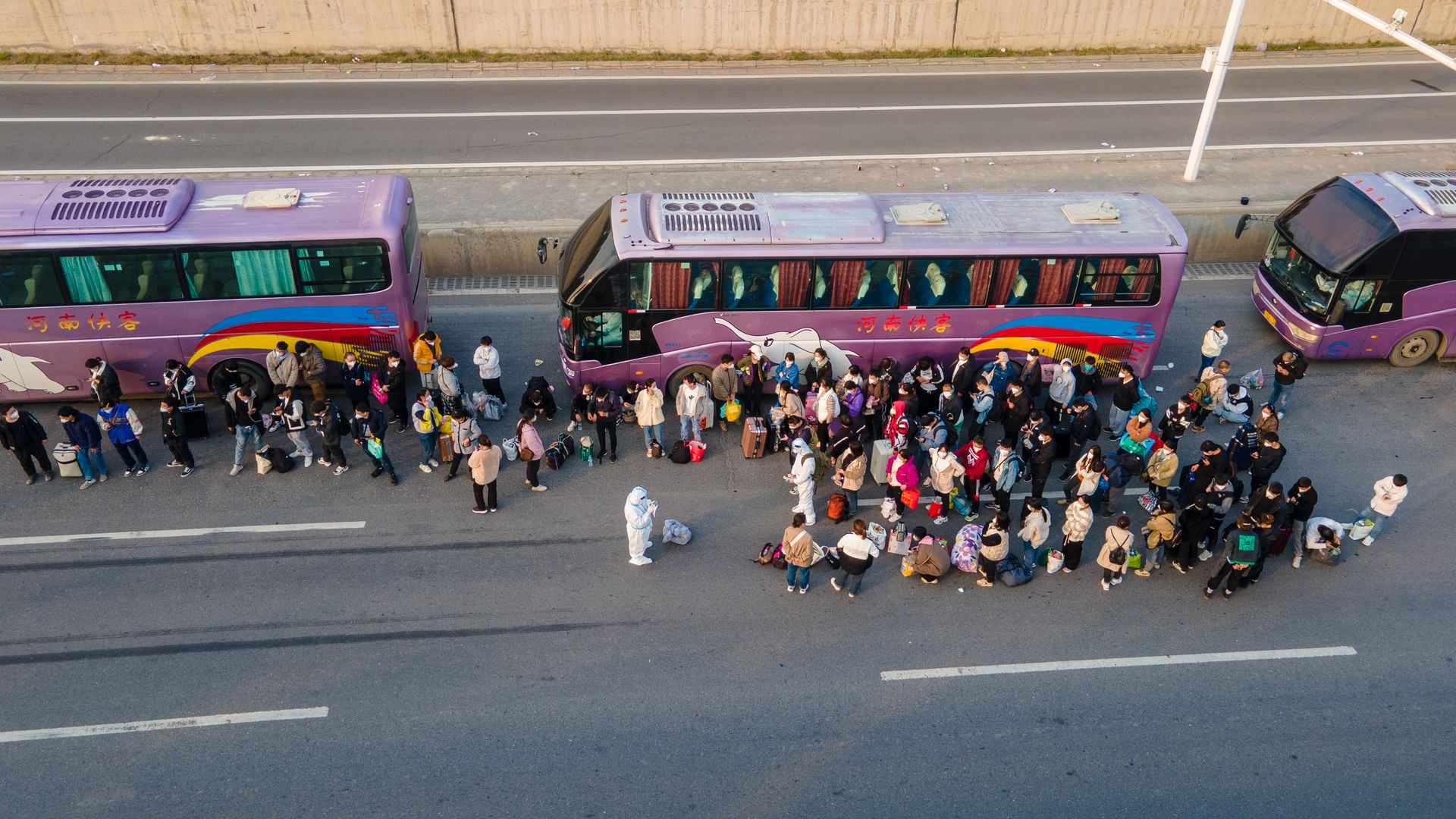 Foxconn employees take shuttle buses to head home on Oct. 30 in Zhengzhou, China. Photo: VCG/VCG via Getty Images