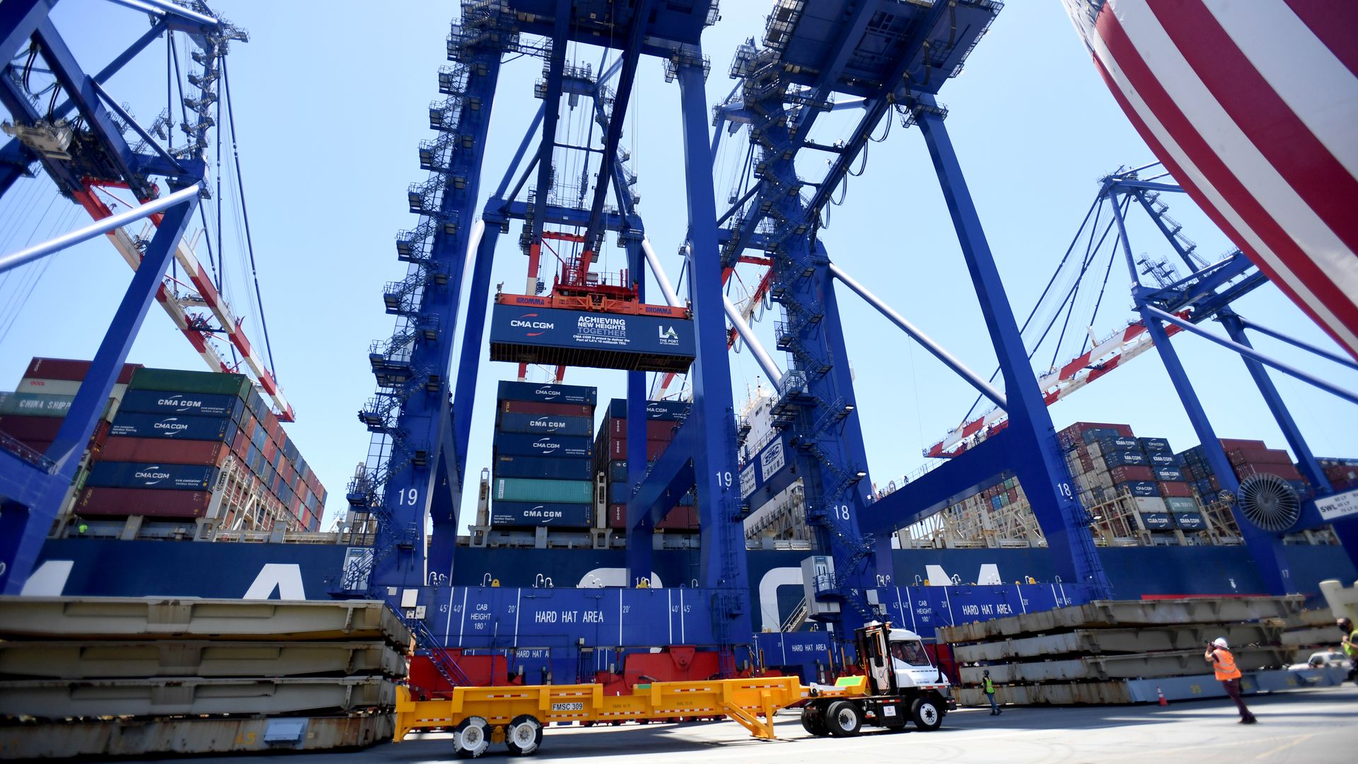 A container at the Port of Los Angeles, which became the first in the Western Hemisphere to process 10 million container units in a 12-month period. (Photo: Brittany Murray/MediaNews Group/Long Beach Press-Telegram via Getty Images)