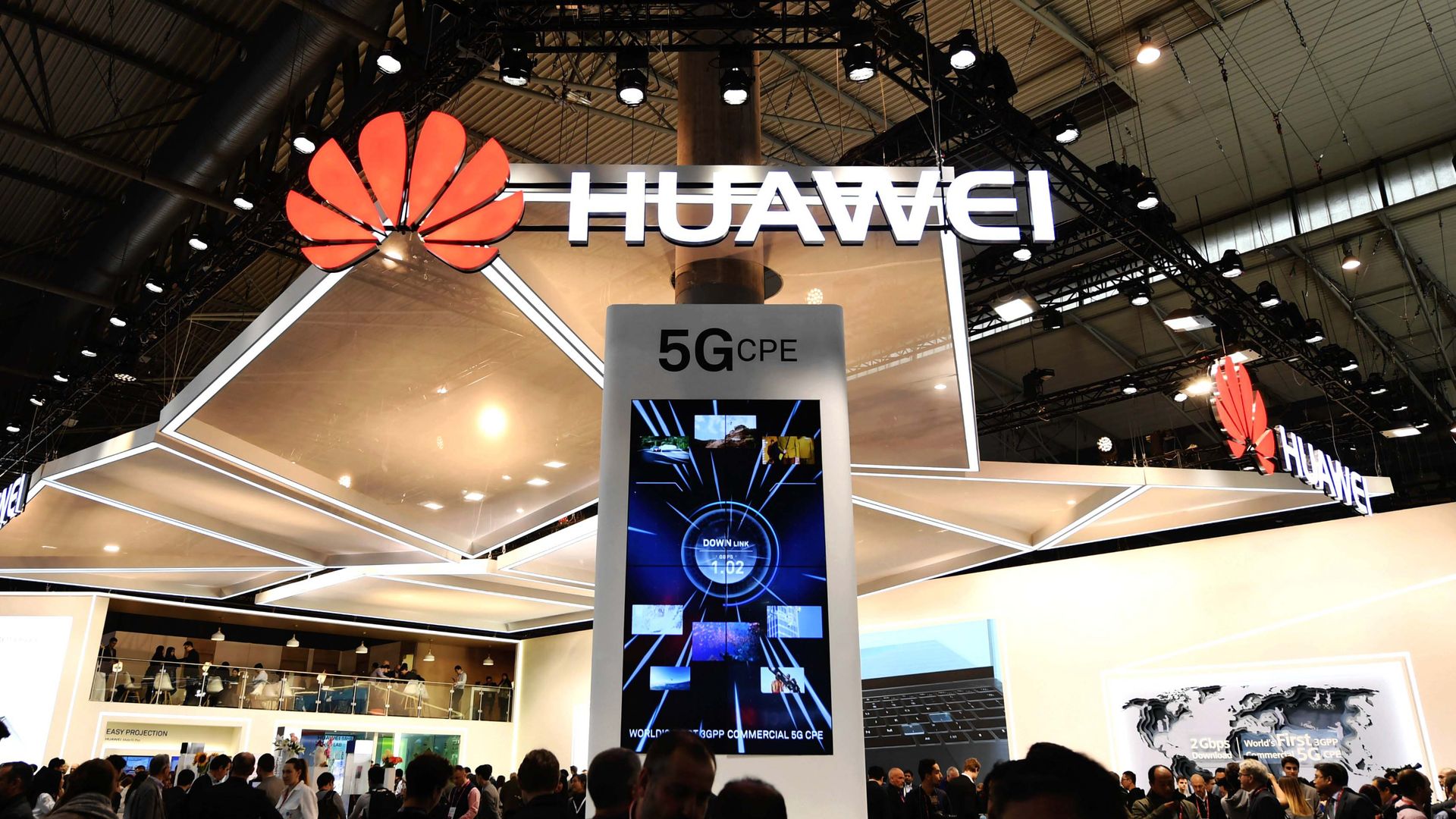 Huawei's booth at February's Mobile World Congress conference. Photo: Guo Qiuda/Xinhua via Getty Images