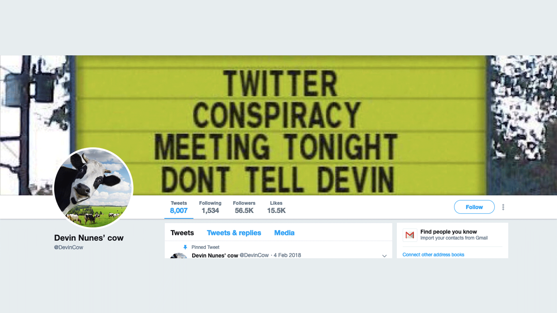 - The lawsuit mentions that Devin Nunes' Cow had a mere 1,024 followers at the time of filing. As of Tuesday morning, the cow had more than 80,500.