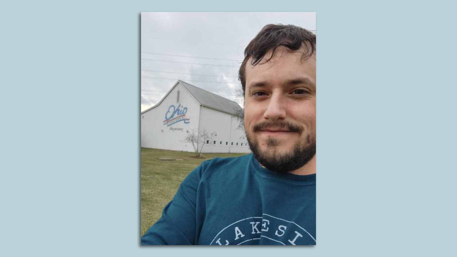 Behind me is a barn featuring the Ohio bicentennial logo.