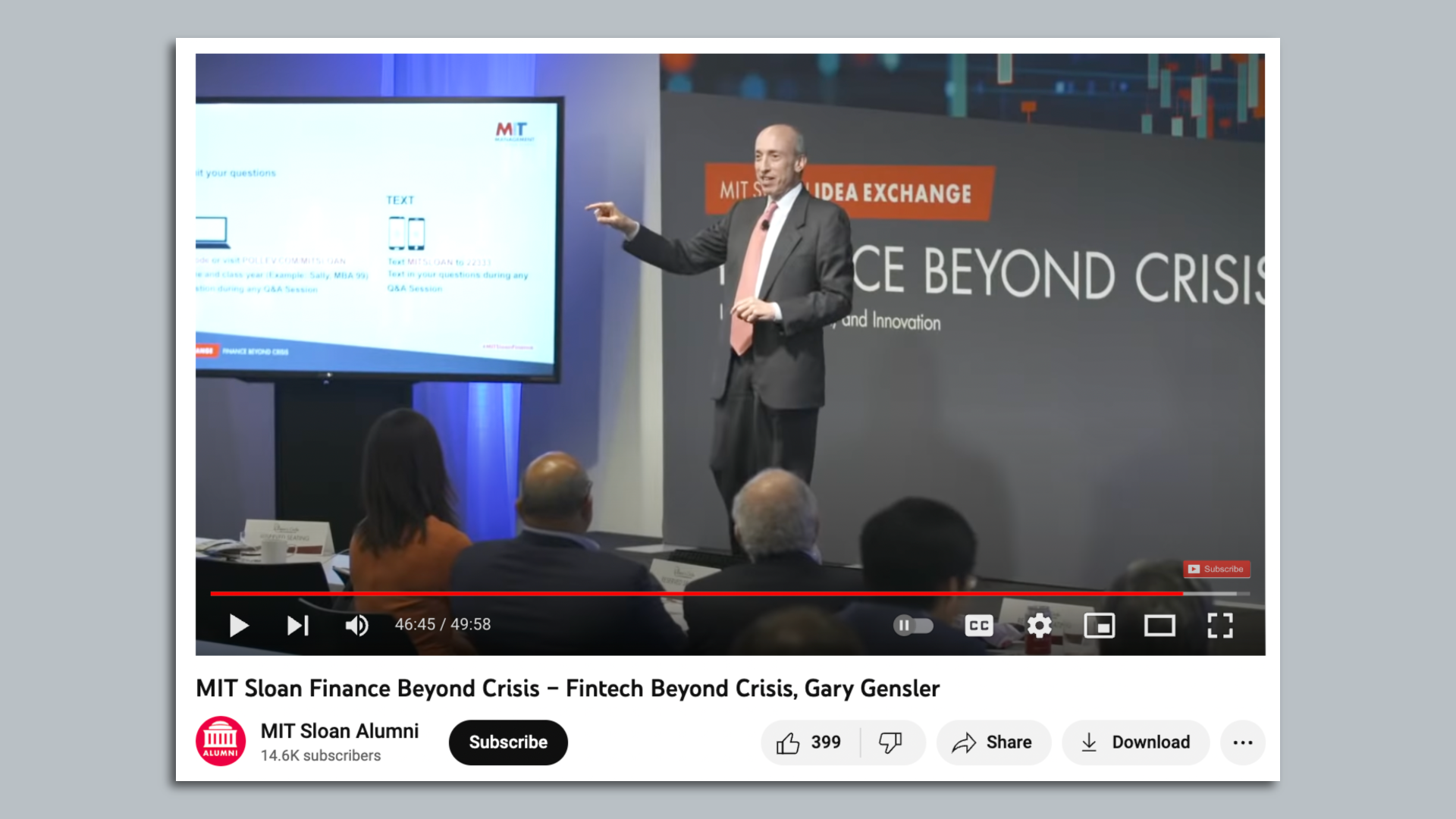 - Of note: At the time of the speech, Gensler was a professor at MIT. It's a safe bet, however, that he had ambitions to return to D.C.
