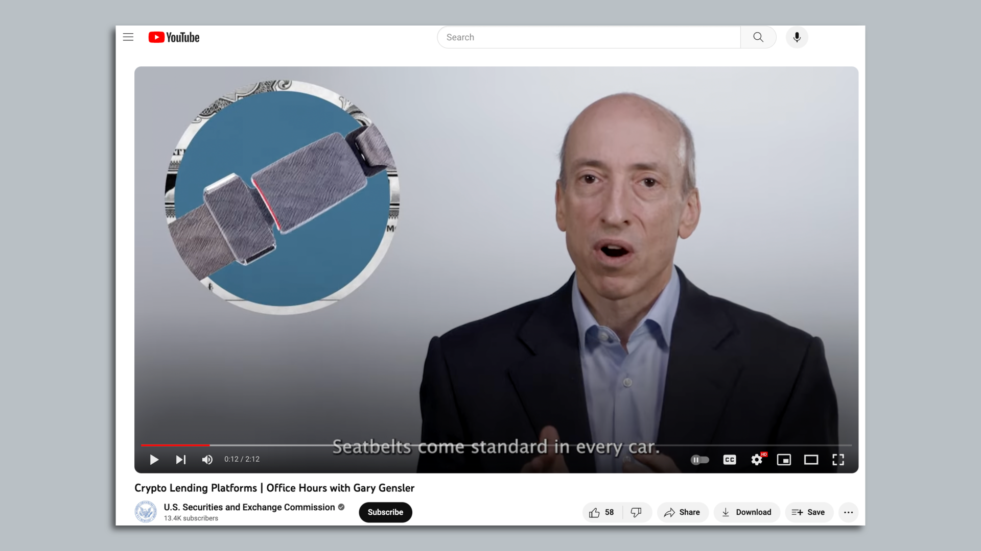 Zoom in: In his highly produced, two- to three-minute "Office Hours" segments on YouTube, Gensler's team has touched on a huge range of topics. But one topic he seems to like to talk about a lot is crypto.