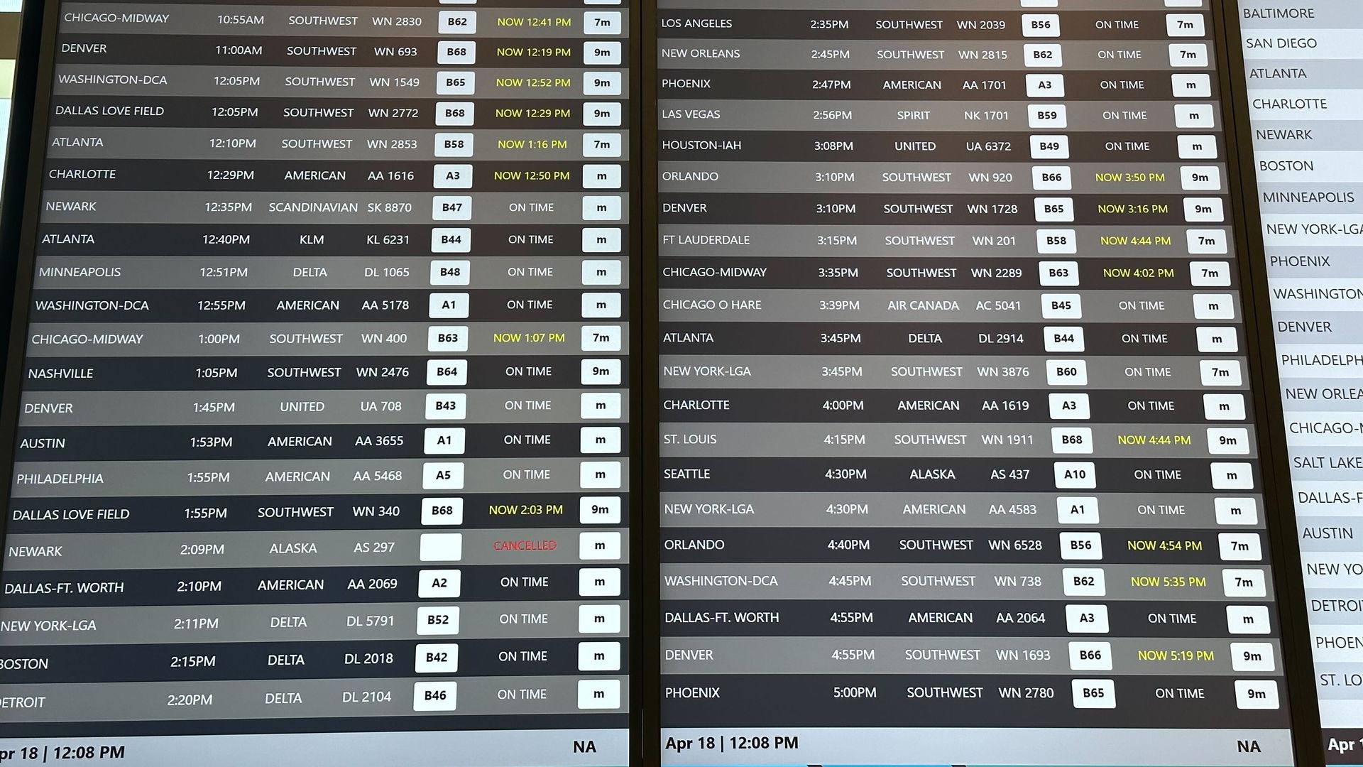 Southwest was back on the struggle bus yesterday with its numerous flight delays. Photo: Tasha Tsiaperas/Axios