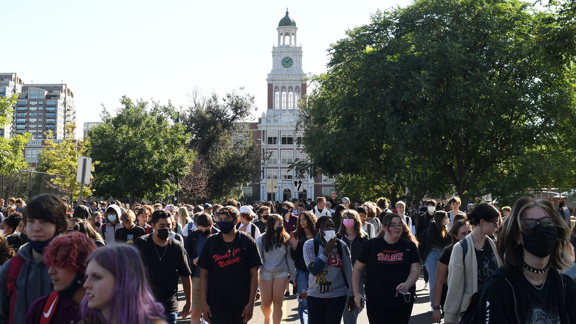 Students at East High School walk out of class to protest school board member Tay Anderson on Monday. Photo: RJ Sangosti/Denver Post via Getty Images