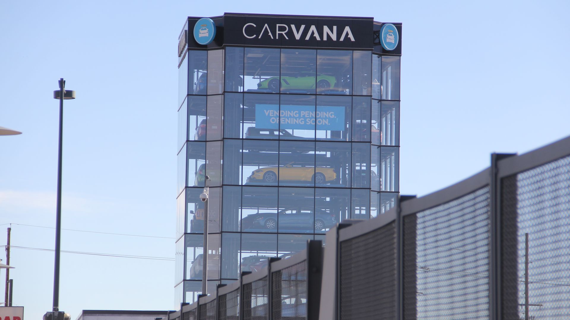 The Carvana car vending machine in Denver on Tuesday. Photo: Esteban L. Hernandez/Axios
