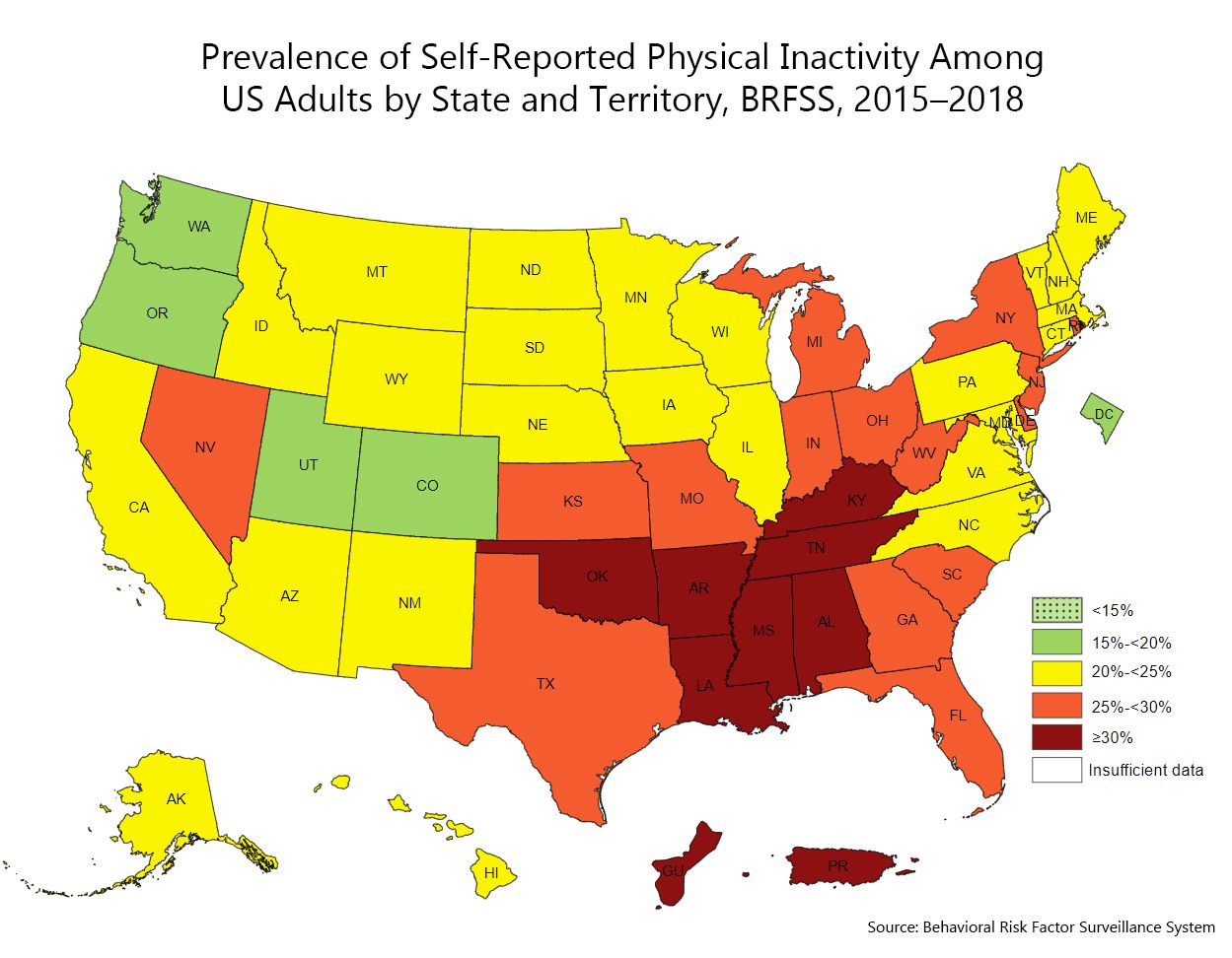 - The state with the lowest rate of inactivity was Colorado (17%).